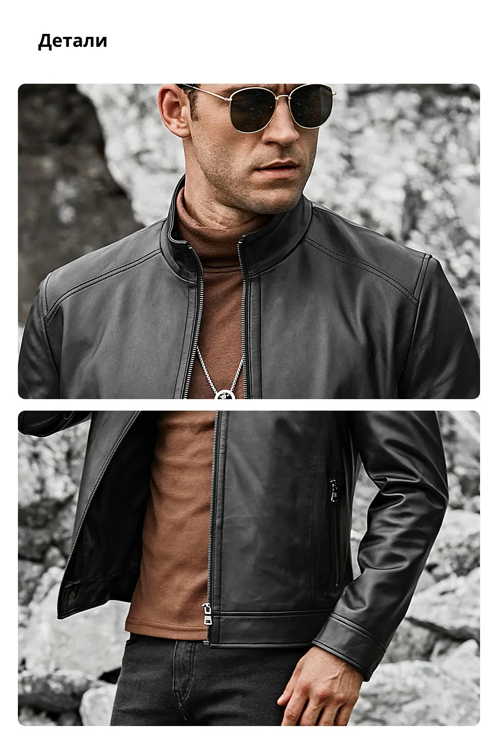 Мужская кожаная куртка бомбер черная винтажная мотоциклетная из натуральной