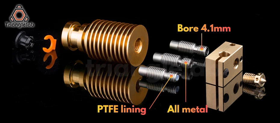 Высокое качество V6Сопло * 0,4 мм (1,75 мм высокого качества)-1 шт.Тепловой разрыв (1,75 мм для V6 HOTEND) X 1Латунный тепловой блок для V6 hotend (для сенсорных картриджей) X 1* Совместимый датчик pt100Алюминиевый радиатор (золотой) X 1
