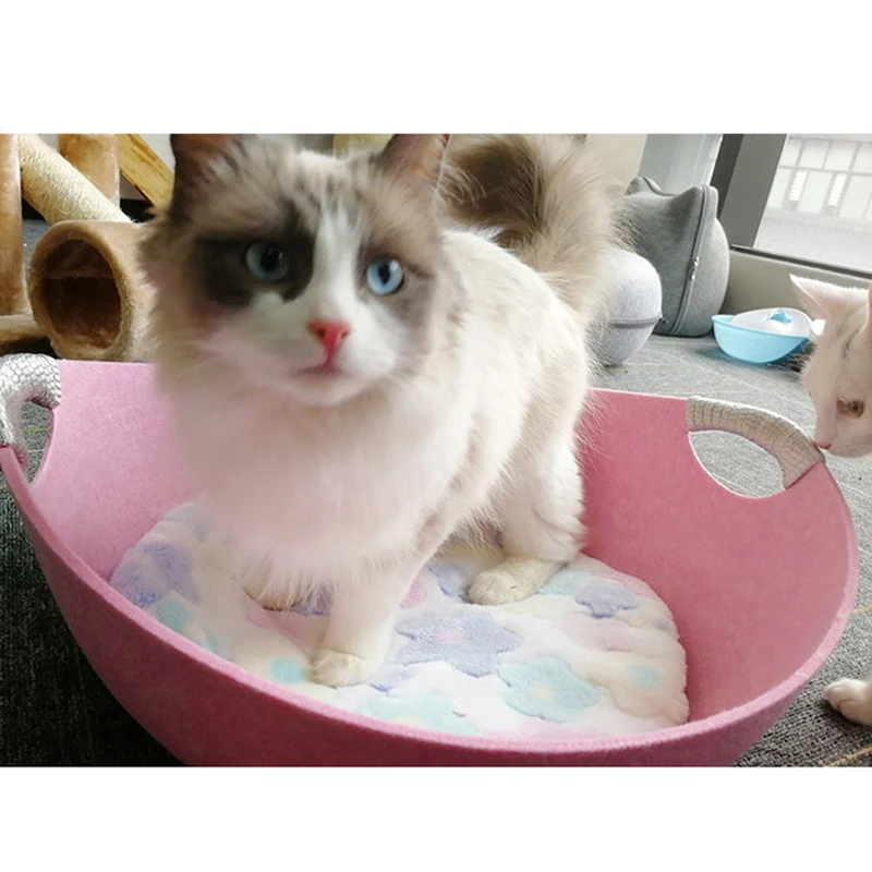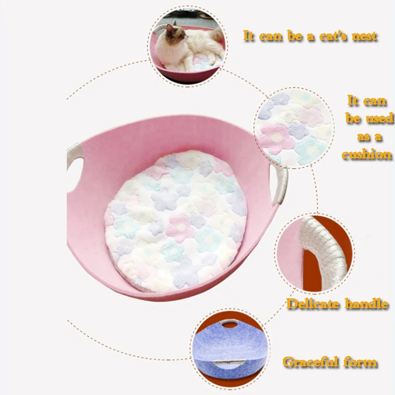 Категория продукта: гнездо для домашних животных Материал: войлок Цвет: синий, светильник-серый, розовый, кофейный Размеры: 40*40*25 см Содержит: Коврик для домашних животных * 1 Кошачье гнездо * 1