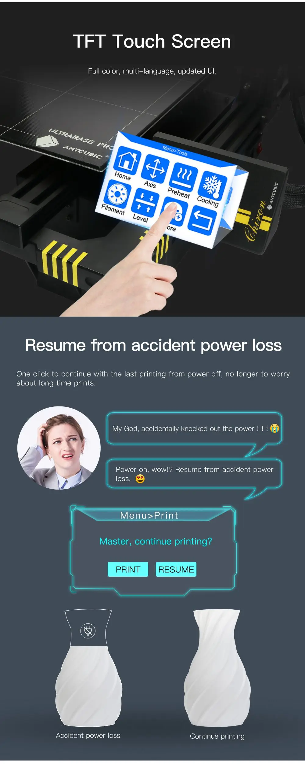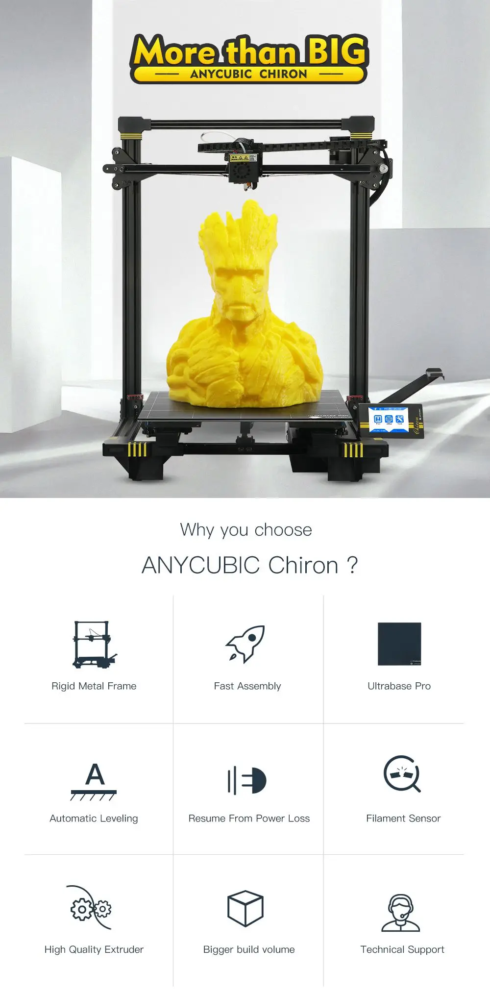 3D-принтер Anycubic Chiron размера плюс дюйма с TFT-экраном, автоматическое выравнивание, титановый экструдер, двойная печать, набор 3D-принтера «сделай сам», гаджет, 3D-принтер