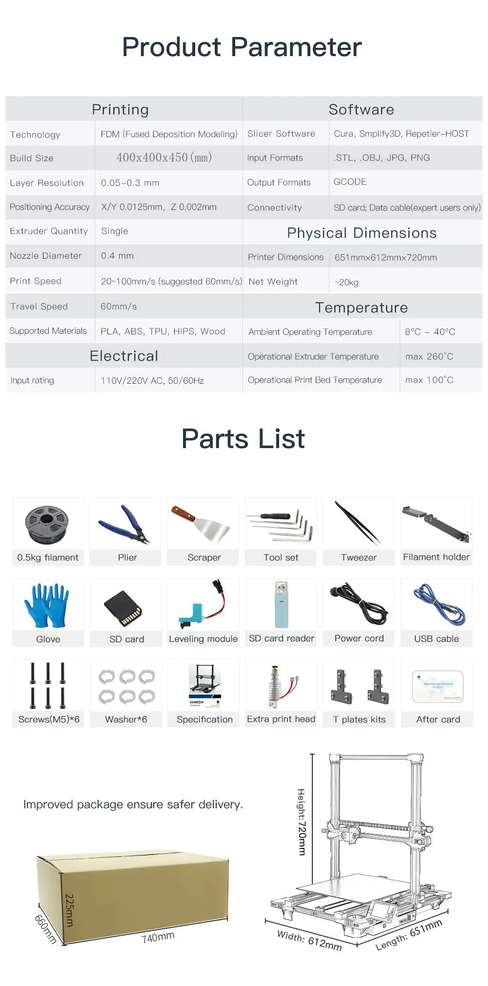 Размер сборки: 400 мм * 400 мм * 450 мм