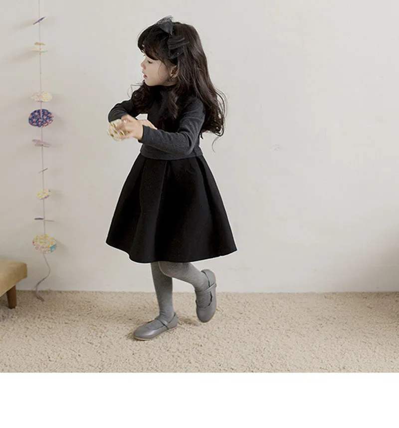 Новинка 2020 года; Сезон осень-весна-зима; Круглый вырез; Цвет черный, серый; Лоскутные лоскутные платья трапециевидной формы для маленьких и больших девочек; Детская одежда