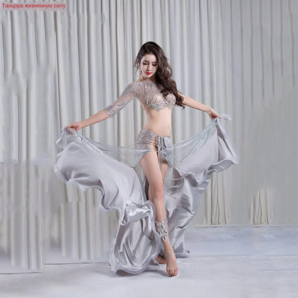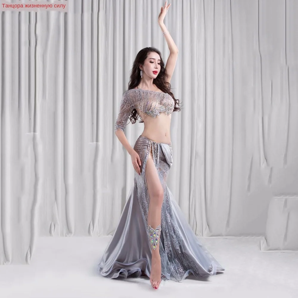 Новый 2 шт. Люкс Танец Живота Платье Костюм Женщины Сценическое Шоу Носить Бюстгальтер Сплит Юбка Танец живота комплект