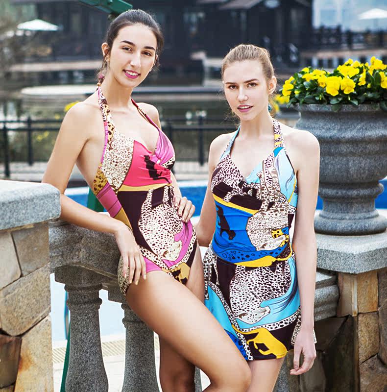 2018 Женская пикантная юбка цельный купальник Бразильский Леопардовый принт боди винтажный Ретро купальный костюм бикини юбка купальник платье Пляжная одежда