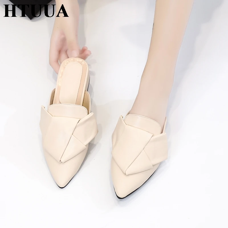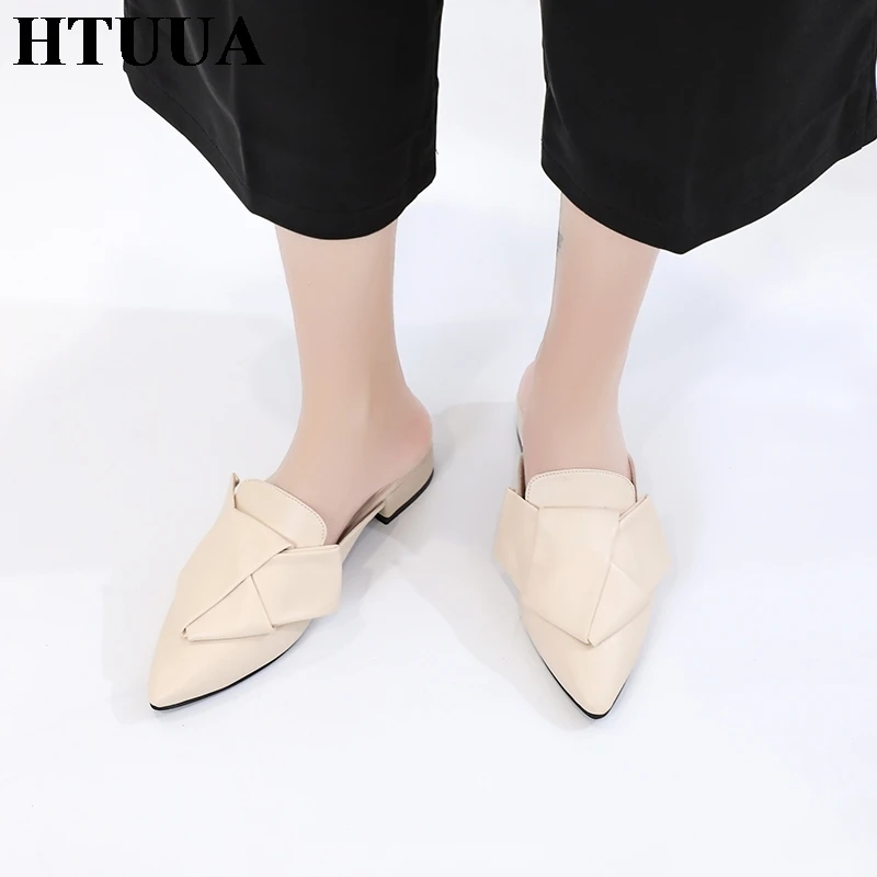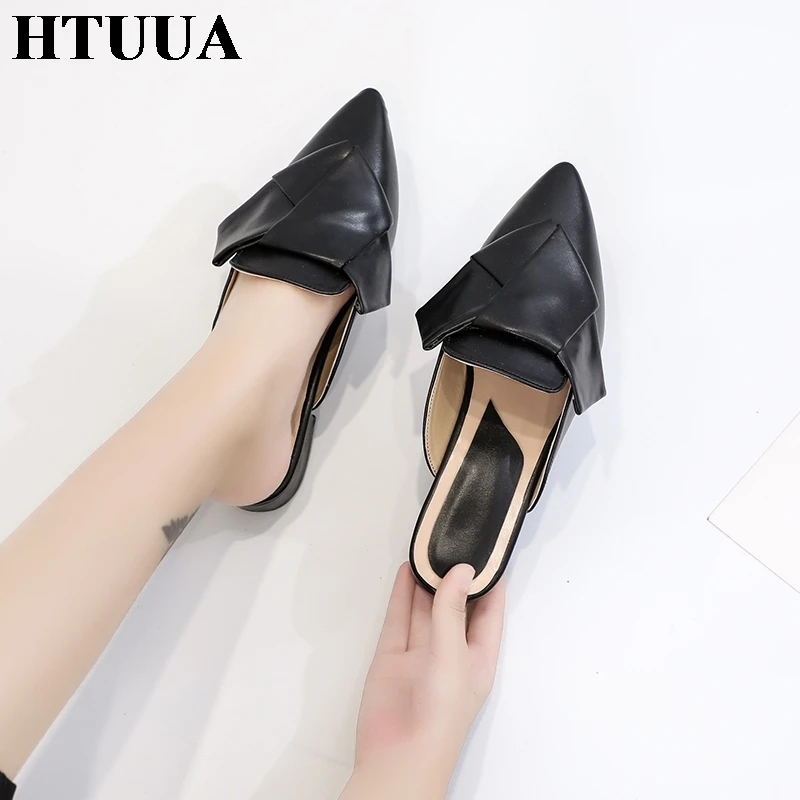 Женская обувь украшенная заклепками женская с экзотическим мехом тапочки для