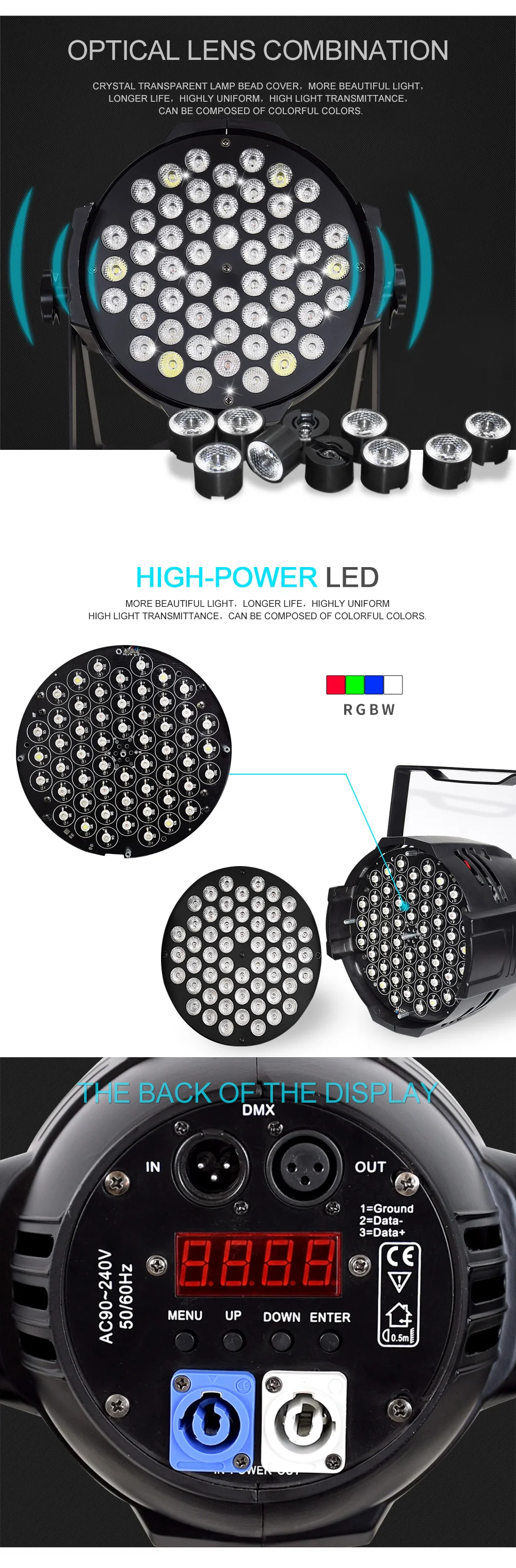 Технические характеристики: * Цена Напряжение: AC90-260V тока/50-60 Гц * Мощность: 162 Вт * Цвет: RGBW * 54 светодиодный: 12 шт. красный, 18 шт. зеленый, 18 шт. синий, 6 шт. белый * Режимы: Sound-active / Auto / DMX / Master-slave * DMX512: 8 каналов * Автономная или основная/подчиненная конфигурация * Угол луча: 25 градусов * С 4 кнопками DMX светодиодный Дисплей * 64 встроенных цветных макросов * Без мерцания * DMX-512 протокол * Светодиодный импульсный и стробоскоп * Соединчющаяся между собой через 3-pin XLR кабель * Электронное Затемнение: 0-100% *. Мульти-Рабочее напряжение: AC 100-240 В пер. тока, 50/60 Гц *. Соединчющаяся между собой: DMX через 3-pin кабель XLR; Мощность через IEC шлейфового Мощность ссылка *. Размер продукта: 235*235*295 мм *. Вес продукта: 2,57 кг Посылка включает в себя: Светодиодный сценический прожектор * 1 Руководство пользователя на английском языке * 1 Кабель питания * 1 DMX кабель * 1 Кронштейны * 2 Винты-2