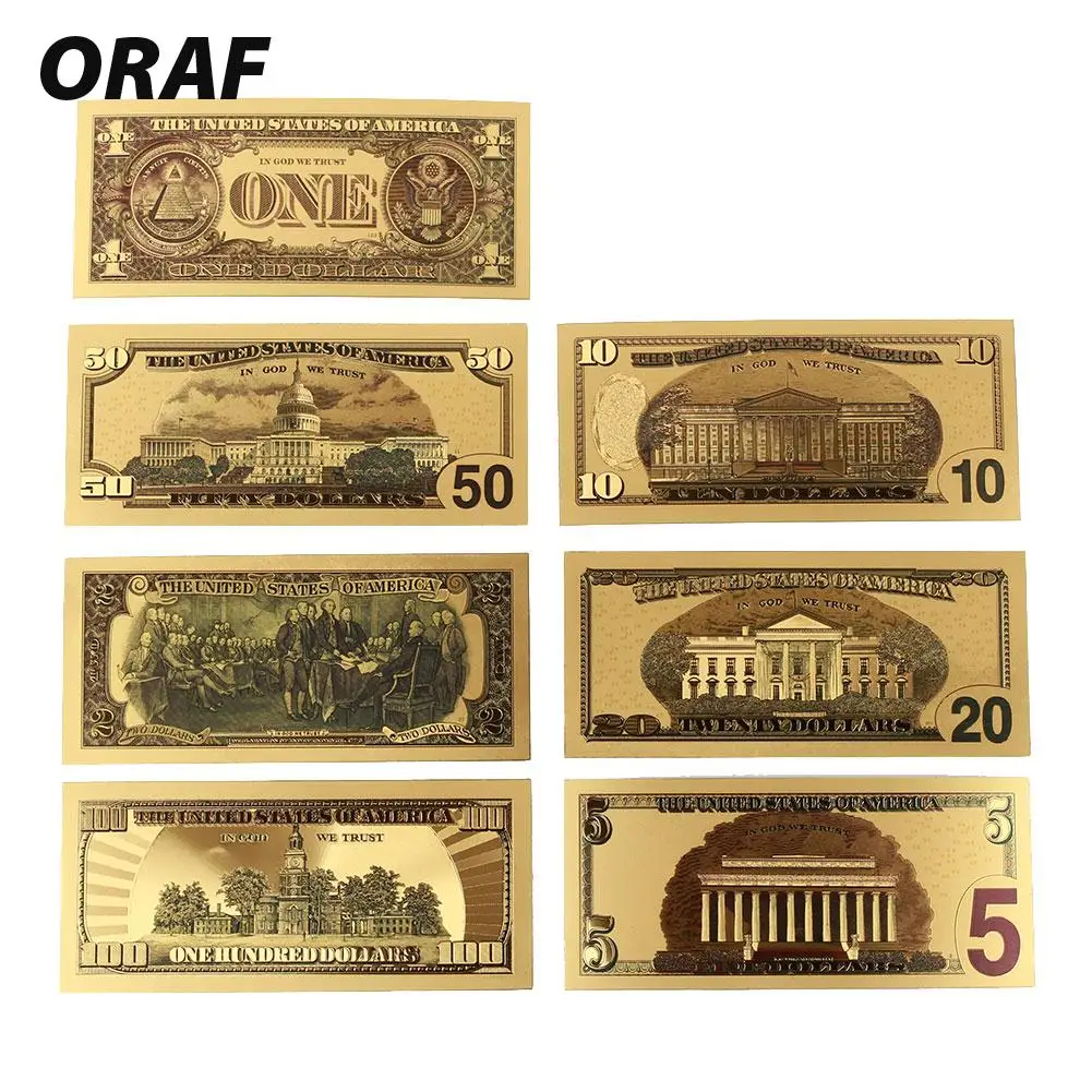 7 шт. 100/50/20/10/5/2/1 доллар поддельные деньги Опора деньги Банкноты США купюр, банкнотной в 24-каратное Золотое напыление для выявления фальшивой валюты е подарки
