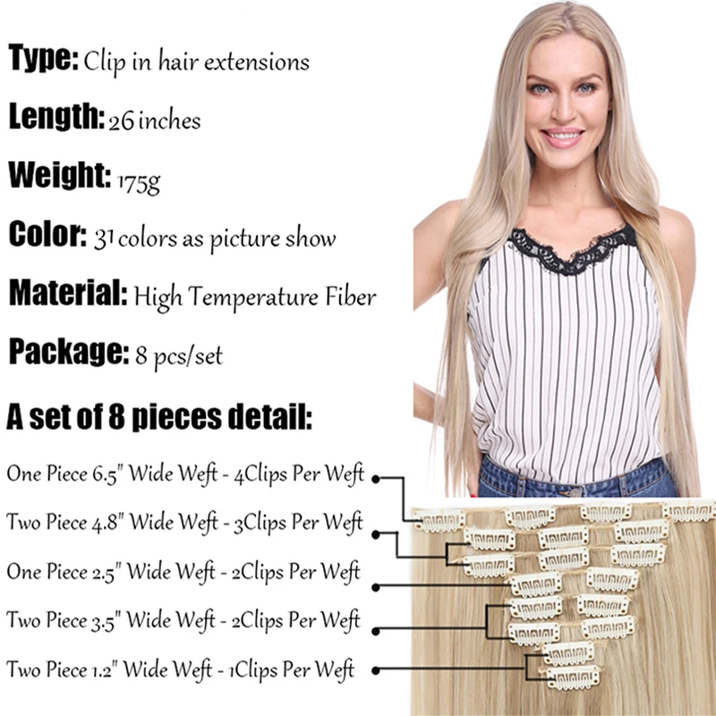 2)Premium heat resistant fiber synthetic Hair Extension.