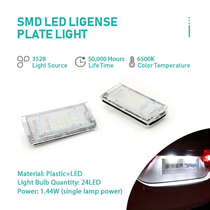 Применение: Для BMW E46 2D Facelift 2004-2006 Для BMW E46 M3 Facelift 2004-2006 Особенности: 100% новый. Светильник: белый. Напряжение: 12-30 в. Цвет светильник: 6000K. Люмен: 126LM Чипсеты: 18 шт. 3528 SMD. Срок службы: более 60000 часов. Комплекпосылка ция: 2 светодиодный ных лампы для номерного знака.