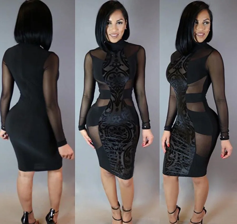 Стиль: женское облегающее платье с длинными рукавами.