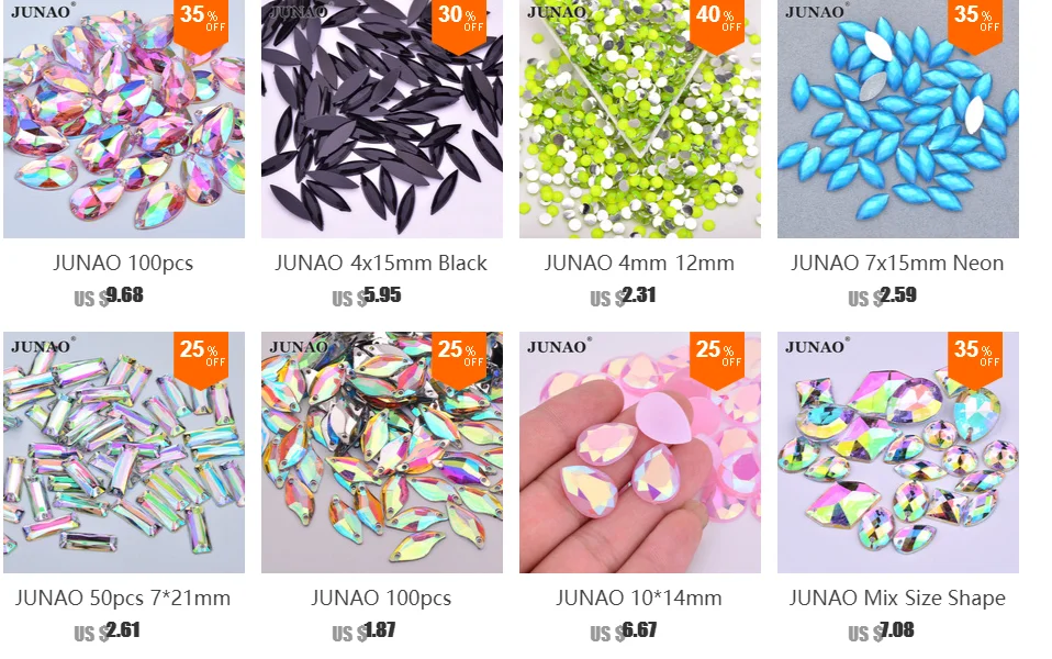 JUNAO 10*30 мм большие Швейные Разноцветные кристаллы стразы в виде капель прозрачный AB Кристалл