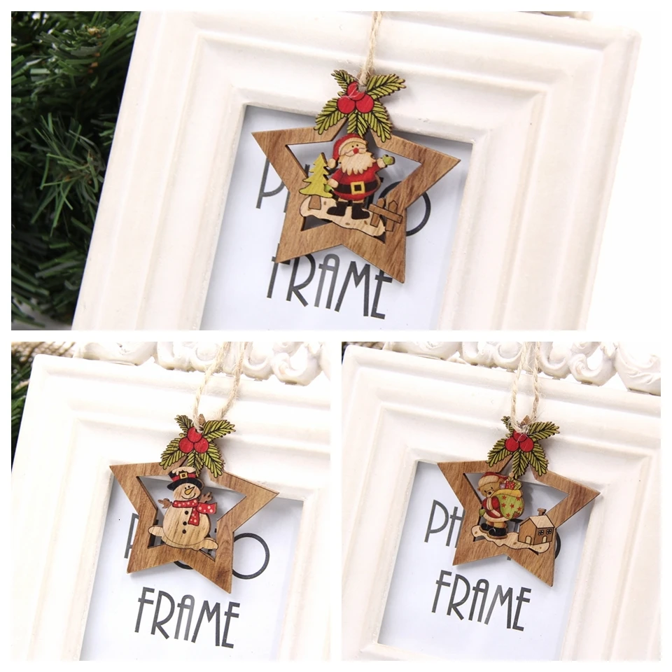 4 шт. Деревянные Подвески с принтом звезды, украшения орнамент с рождественской елкой DIY деревянные поделки, детский подарок для дома, украшения для рождественской вечеринки