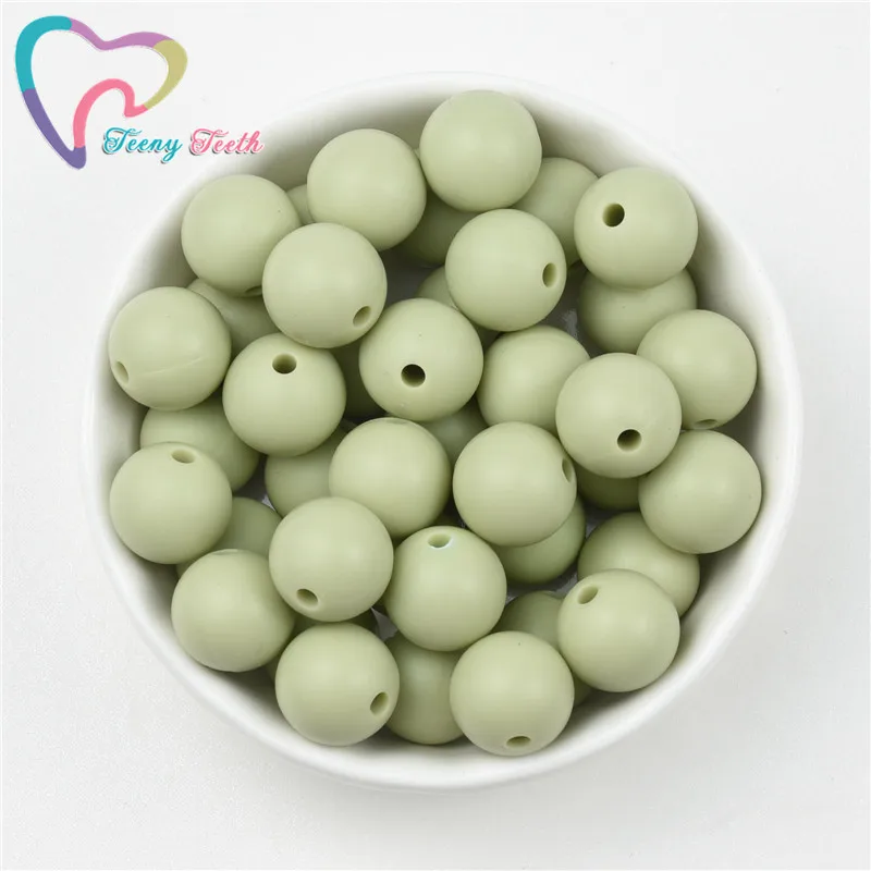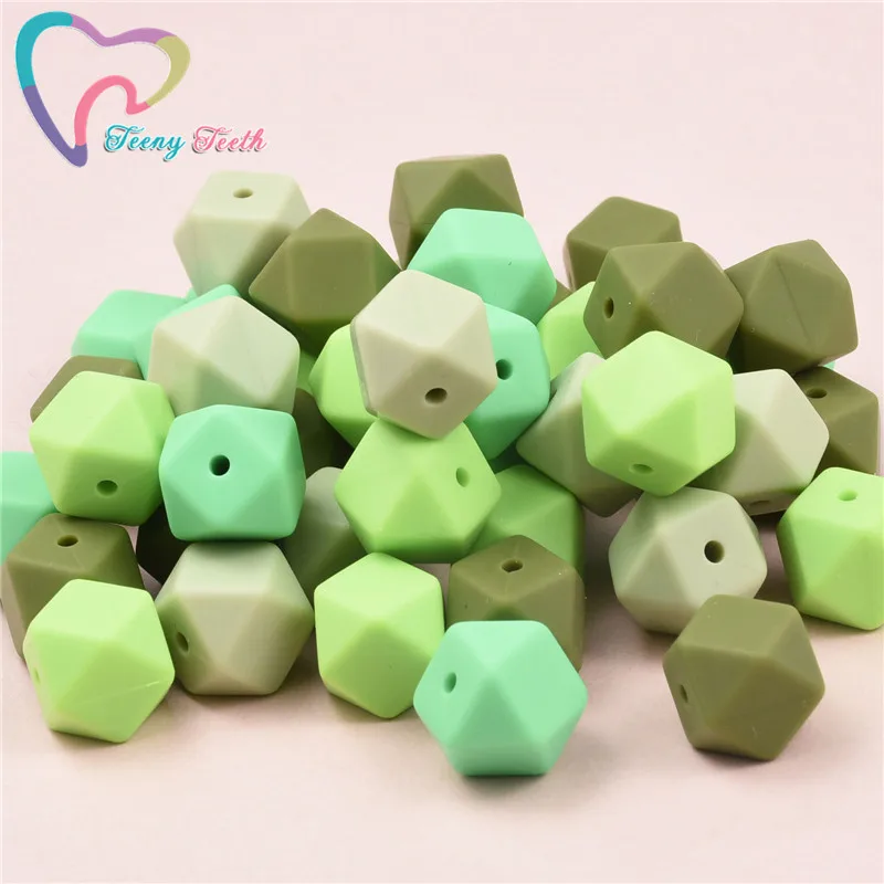 Teeny Teeth 10 шт. Sage Green/Lint Детские Прорезыватели 14-17 мм Силиконовые шестигранные шарики пищевого качества Детские Жевательные геометрические бусины