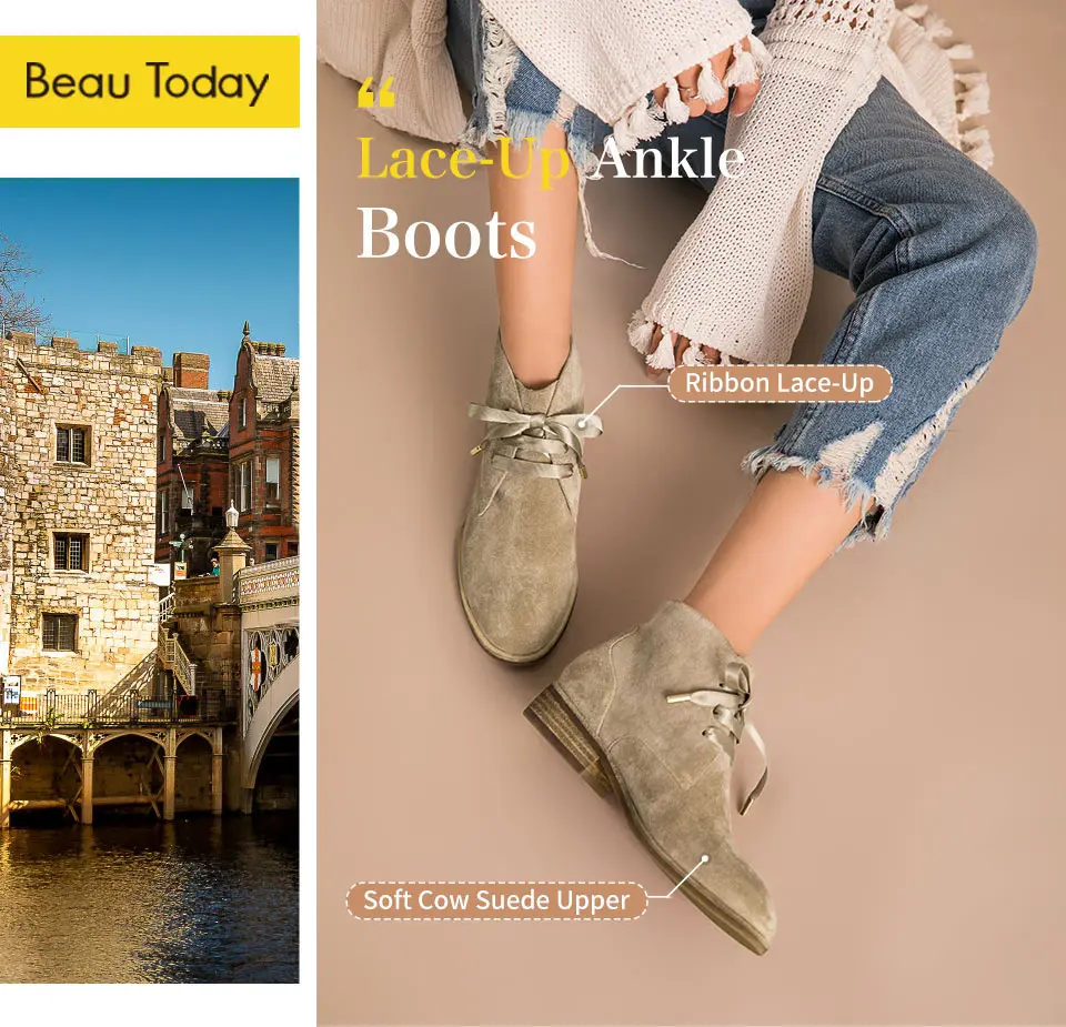 Все подробности об изделии: Мягкая замша и спортивный дизайн делают эти ботильоны идеальным элементом для стиля с платьем и повседневной джинсовой одеждой. Высококачественные материалы делают эту обувь отличной и универсальной. Если вы хотите привнести немного гламурности в свою жизнь, это для вас. Подкладка из гладкой замшевый верх Дышащая подкладка и стелька из свиной кожи Нескользящая резиновая подошва Шнуровка с тремя отверстиями с широкими лентами Обувь с круглым носком С рисунком под дерево каблук Доступные цвета: бежевый, черный, коричневый Ручной работы Хорошее качество Посылка: коробка для обуви