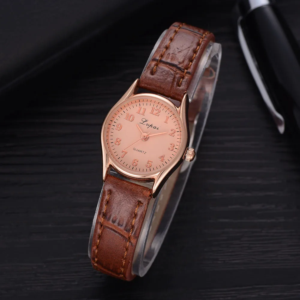 1 пара Lvpai кожаный ремешок Часы повседневные Пары Кварцевые аналоговые наручные часы
