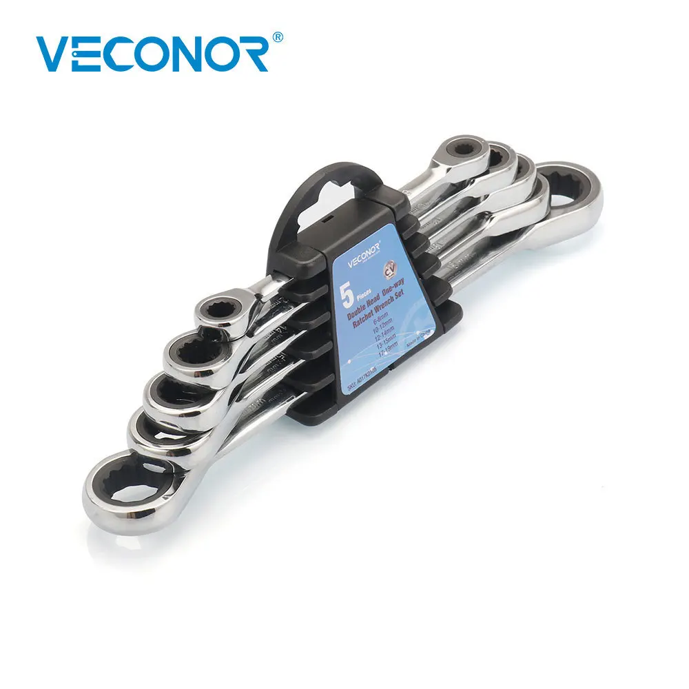 Набор гаечных ключей VECONOR 5 шт. Трещоточный ключ с двойной трещоточной головкой, гаечный ключ с упакованной стойкой, зеркальная полировка, универсальный ручной инструмент для ремонта, гаечный ключ 72T