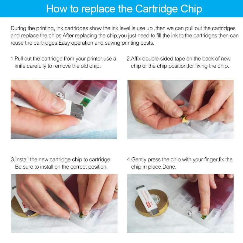 Вы можете использовать двустороннюю ленту, чтобы прикрепить чипы непосредственно к чернильным картриджам.