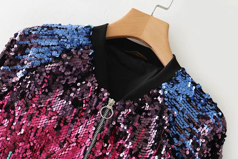 2018 зимняя куртка с блестками Женская Блестящая куртка-бомбер с рукавом три четверти на молнии блестящие уличные модные куртки пальто DW638 <