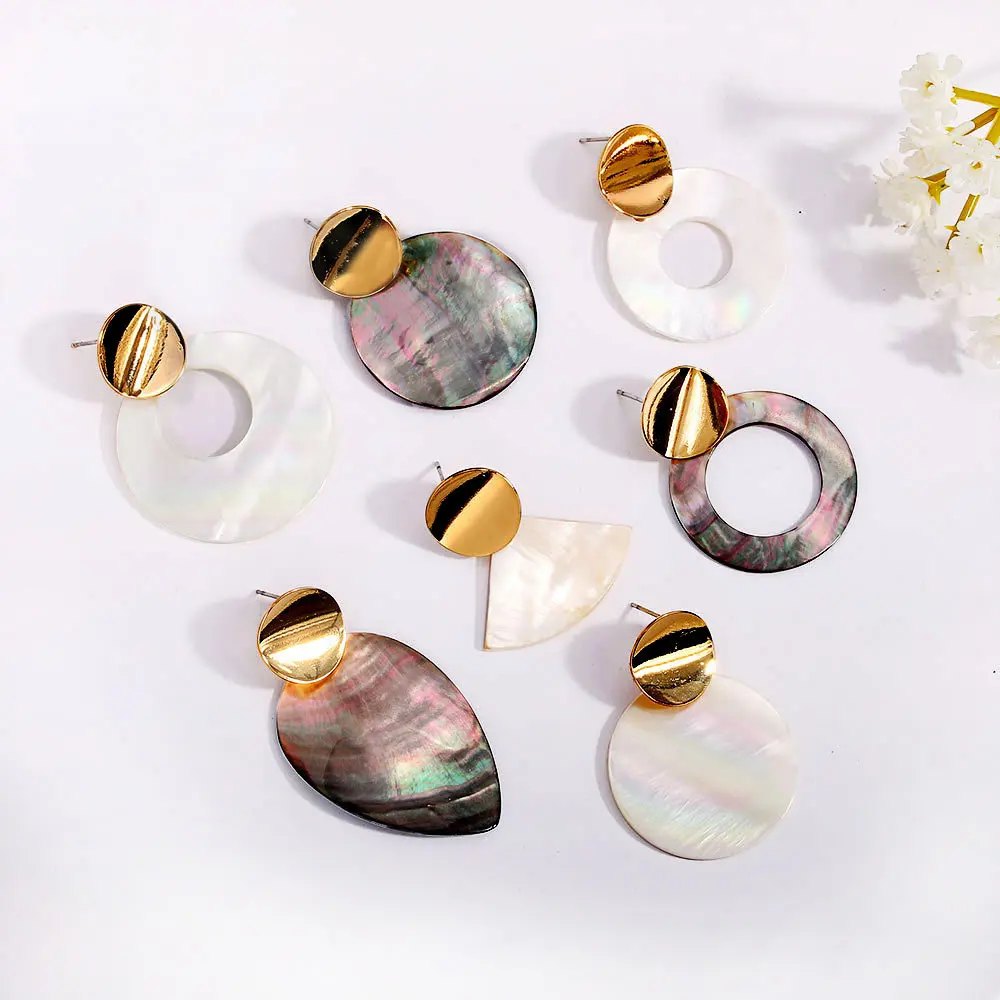 Серьги из натуральной раковины, роскошные круглые Висячие серьги, необычные металлические геометрические серьги для женщин, Подарочные ювелирные серьги, оптовая продажа