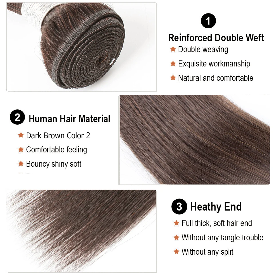 100% человеческие волосы, цвет 2 темно-коричневый, 10-24 дюйма в наличии, 4x4 закрытие 12-20 дюймов