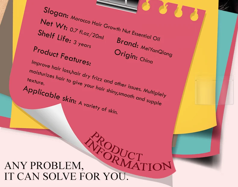 Бренд: MeiYanQiong Название: марокканское эфирное масло для роста волос Реклама: Предотвращение выпадения волос способствует росту волос экстракт ореха Вес нетто: 20 мл Состав: Argia SPINOSA KEPRNEL OIL, гидрогенизированный пальмглицерид, OENOTHERA BIENNIS (Вечерняя Примула), Масло MACADAMIA TERNIFOLIA SEEDOIL этилгексил метоксициннамат AROM. Характеристики продукта: Этот продукт обладает уникальным средством предотвращения выпадения волос, способствует росту волос, увлажнению волос, уходу за волосами и другим эффектам. Экстракт различных ореховых эссенций, Глубокое восстановление волосяных фолликул способствует росту волос, предотвращает выпадение волос, уменьшает раздвоение, улучшает выпадение волос. Сухая завивка волос и другие проблемы, много увлажняет волосы, чтобы сделать ваши волосы блестящими. Гладкая и эластичная текстура. Метод использования: 1. Добавьте соответствующее количество этого продукта в шампунь (100 мл шампунь плюс 3 мл). Перемешать смешанный шампунь. Обычный способ шампуня может быть. 2. Можно непосредственно капать 2-3 мл в ладонь, равномерно наносить на волосы. 3. Использовать до и после завивки для восстановления повреждения волос, вызванных нагревом. 4. Несколько капель продукта можно смешать равномерно с маской для волос, это даст вам двойное лечение. Тип кожа: для всех типов кожи. Примечание: Если вы почувствуйте дискомфорт на коже, пожалуйста, прекратите использование. Состояние хранения: Пожалуйста, держите подальше от света и прямых солнечных лучей