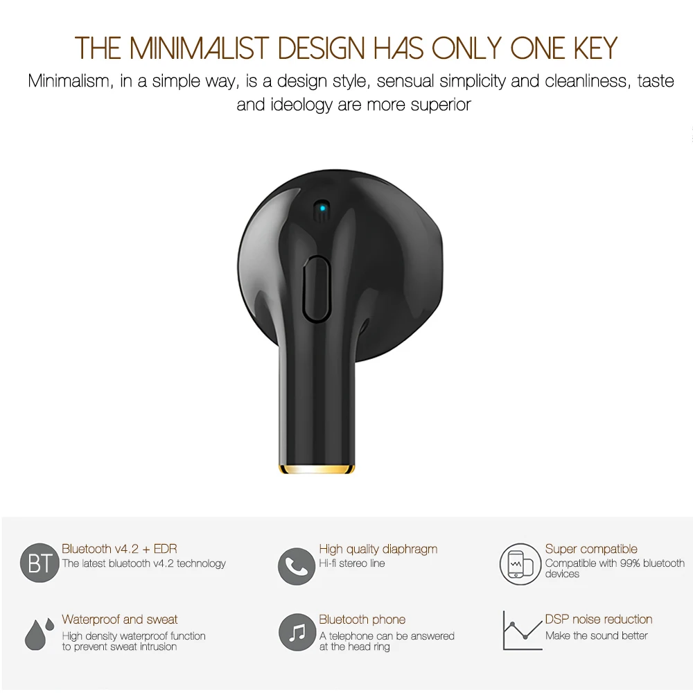 CHYI Mono Мини Bluetooth наушники с одним ухом эргономичные невидимые водонепроницаемые красочные вкладыши для телефона Samsung Oppo