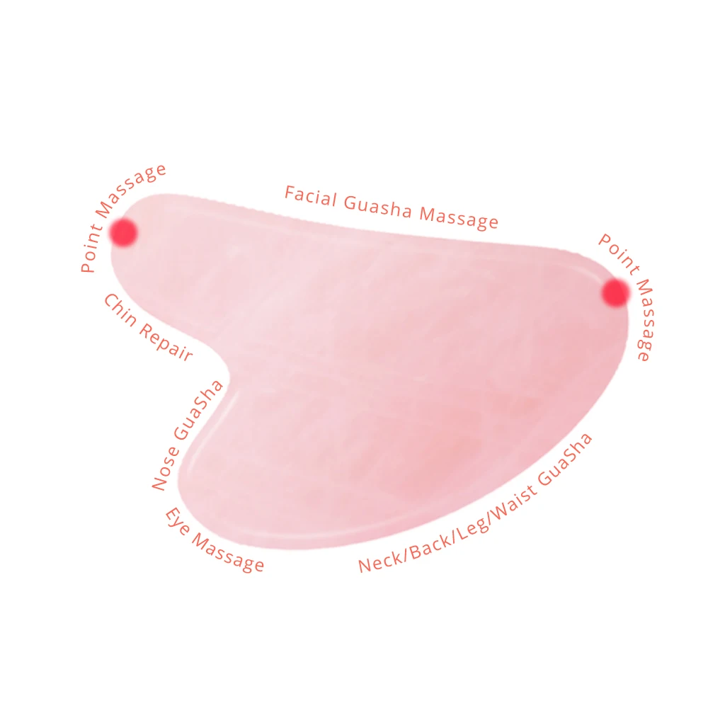 Гуаша, стимулируя связанные с телом меридианы, акупунктурные точки, для достижения кровообращения, драги меридиана, боли qi, детоксикации тепла, создания высокомерия и желудка, физических целей фитнеса. Является традиционной зеленой терапией, может улучшить кровообращение организма, способствовать метаболизму, повысить иммунную функцию организма. Gua Sha приводит к появлению небольших красных пятен под названием «sha», которые исчезнут в течение 2-3 дней.