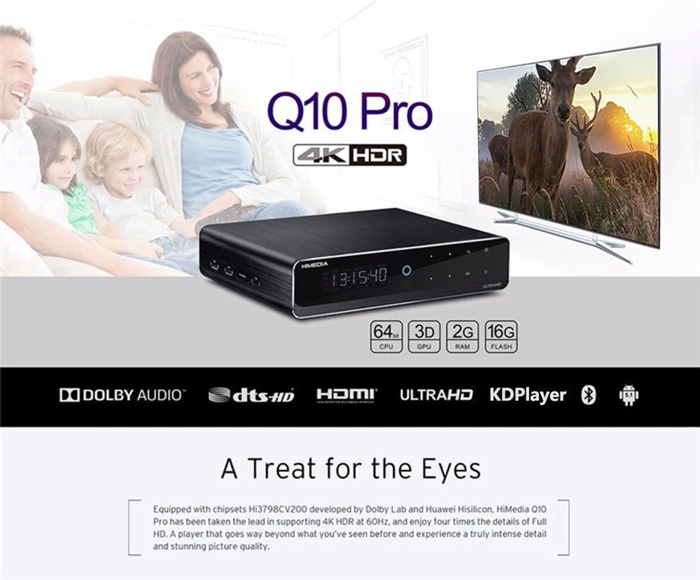 -Новейшая система Android 7,0 Lollipop Q10 Pro имеет полный Play Store предварительно установленный с доступом ко всем приложениям, что позволяет легко установить приложение. Предварительно установленный хромированный браузер со вспышкой 11 и HTML5. Ключевые приложения для Android, такие как BBC iPlayer, Youtube, Skype, Netflix, совместимы. -7,1 канальный HD-AUDIO, поддержка нескольких каналов декодирования и прохода HiMedia Q10 Pro поддерживает все HD-аудио форматы. Dolby True-HD, Dolby True-HD ATMOS, DTS:X, DTS-HD MA, 5,1/7,1 LPCM, DTS и Dolby Digital AC3 все могут быть ниспадающими и битроидными (сквозной) С помощью встроенного приложения HiMedia video player или любой версии KD с оболочкой HiMedia. -Чипсет HISILICON 2018 Новый Чипсет Huawei HiSilicon Hi3798C V200 с четырехъядерным процессором 64-битным процессором Cortex A53 и четырехъядерным процессором Mail-720. Общая производительность является одним из лучших в любой коробке Android. GPU Mali-720 является примерно 5x более мощным на ядро, чем Mali-450, широко используемый в других продуктах. -Двухдиапазонный Wi-Fi + гигабитная LAN Конечная в потоковой производительности. Двухдиапазонный Wi-Fi (2,4 ГГц/5 ГГц 802.11AC) с включает в себя большие сумки направленная антенны дает наилучшие приема и передачи данных. Гигабитная LAN обеспечивает сверхбыструю проводную сеть. Поддержка удаленного wakeup и ожидания через ethernet. -Внутренний 3,5 "HDD BAY HiMedia Q10 Pro поддерживает внутренний 3,5 "жёсткий диск до 8 ТБ. Идеально, если у вас есть большая коллекция видео, которые вы бы хотели получить локальный доступ. -Переключение скорости автоматической рамы 23,976/29,976 Плавное воспроизведение всех форматов видео. Это область, где HiMedia / HiSilicon выслушали отзывы пользователей и работали над обеспечением всесторонней поддержки от запуска. -2 Гб оперативной памяти + 16 Гб памяти Быстрая память DDR3 объемом 2 ГБ обеспечивает бесперебойную работу и внутреннюю память eMMC 5,0 объемом 8 Гб. | ||||||||||||||||||||||||||||||||||||||||||||||||||||||||||||||||||||||||||||||||||||||||||||||||||||||||||||||||||||||||