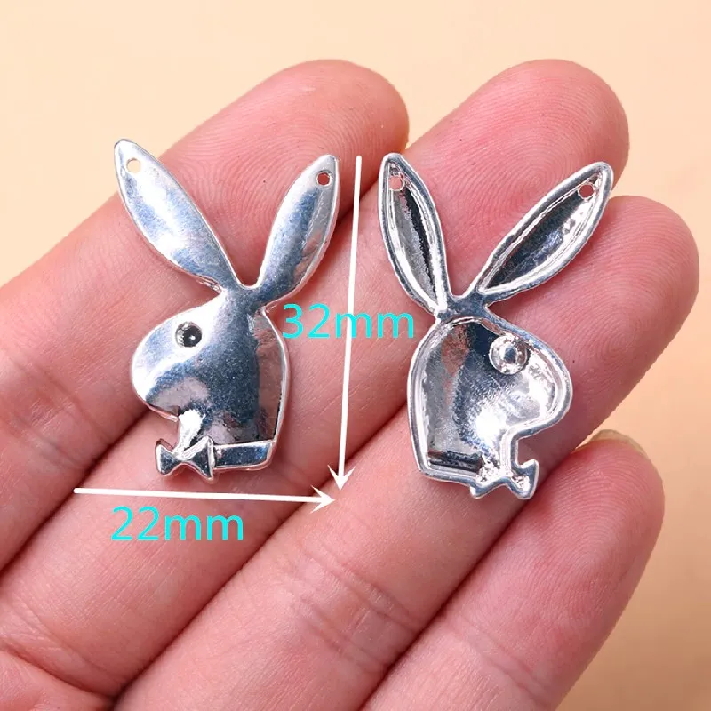 6 шт. Экологичное покрытие милый длинный Ушастый кролик двойное отверстие металлический кулон DIY Подвески ожерелье серьги ювелирное ремесло изготовление A1250