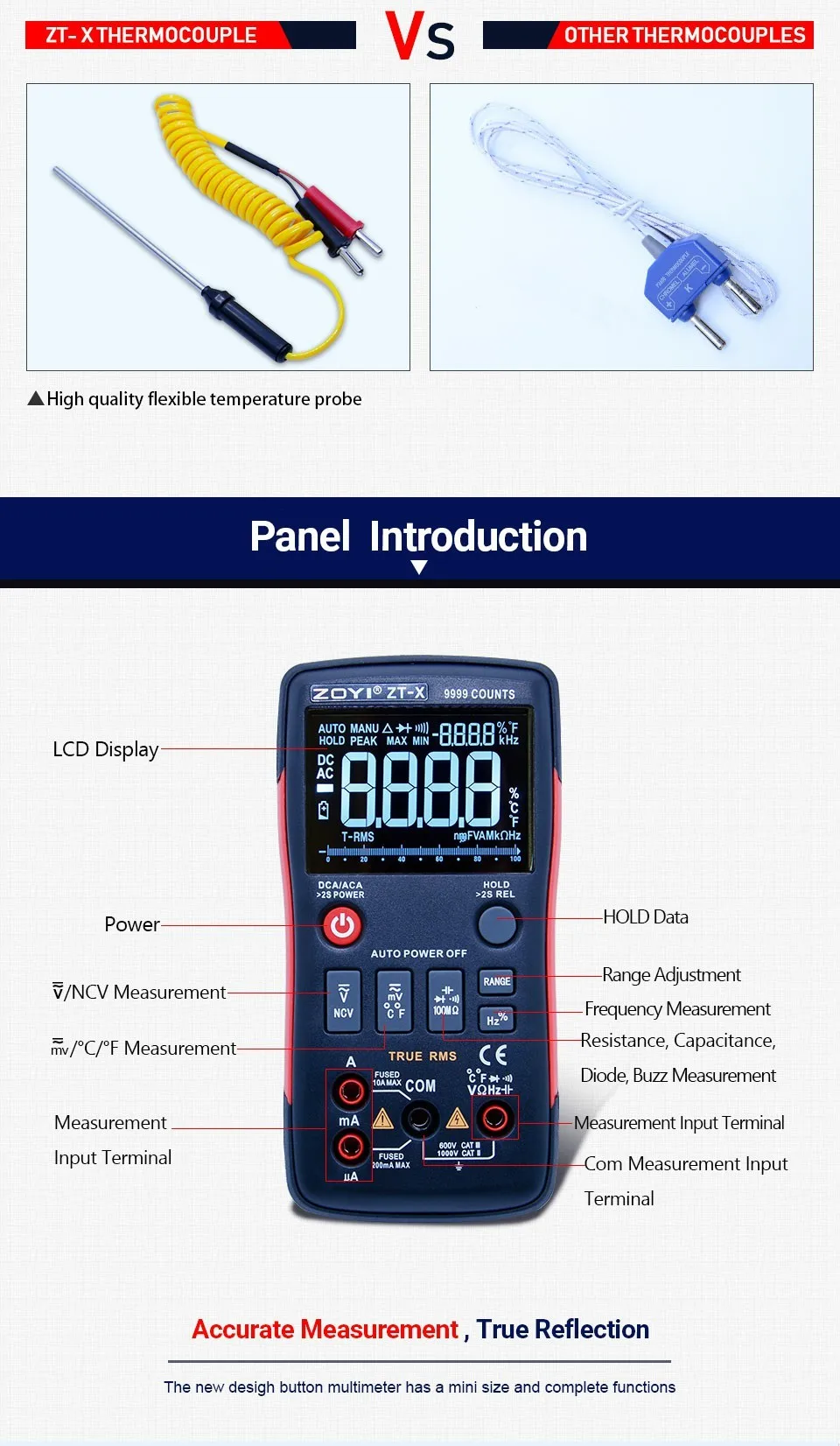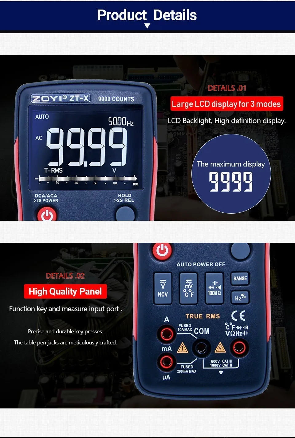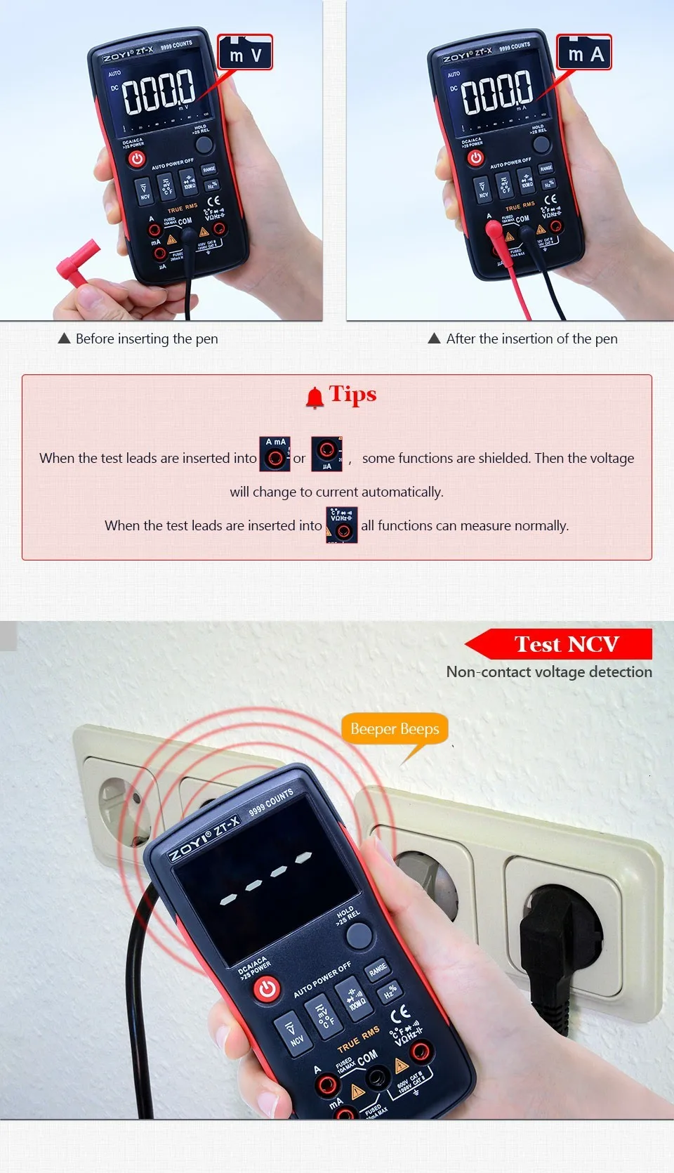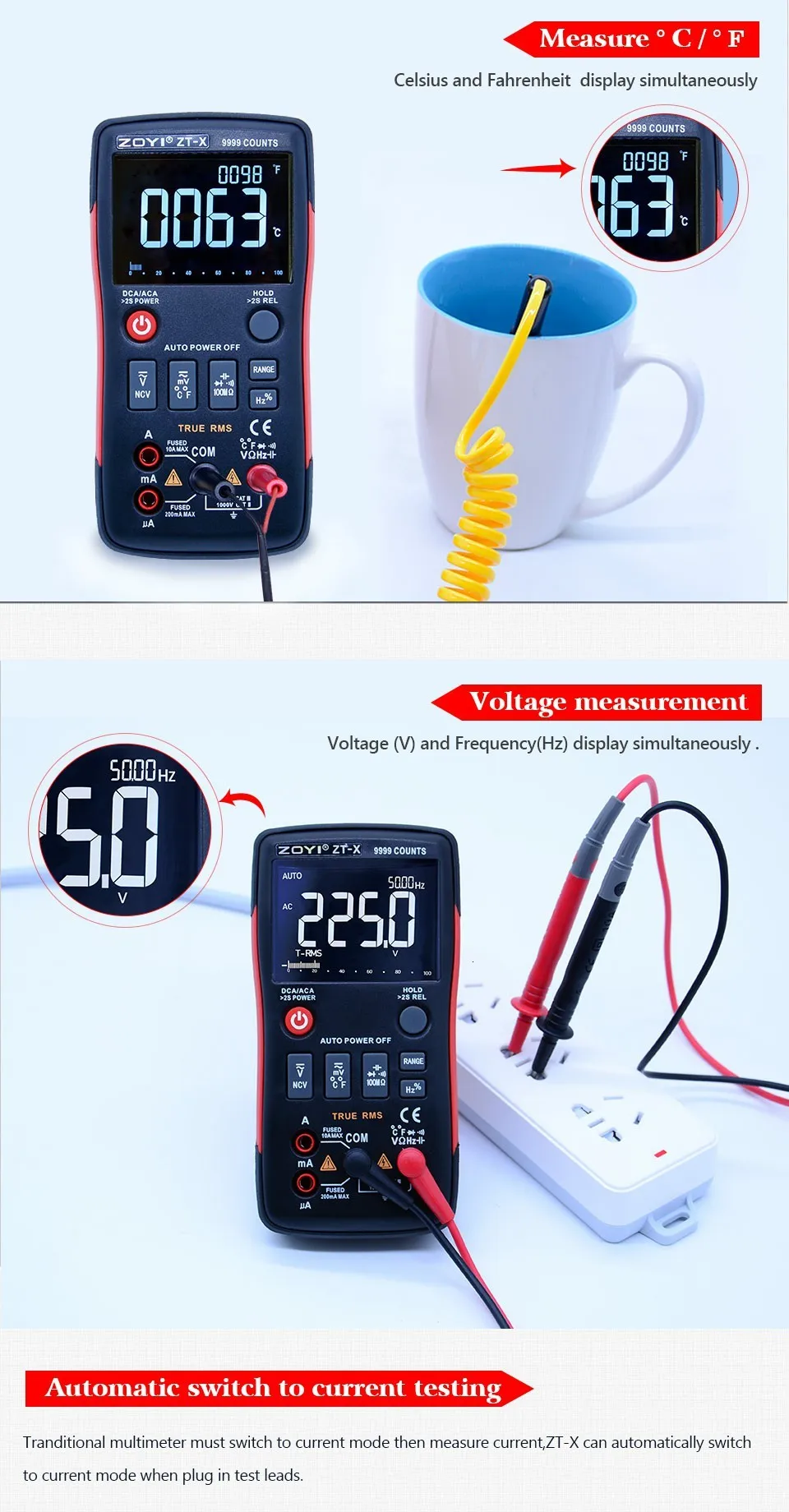 ZT-X Цифровой мультиметр True RMS Авто Диапазон AC/DC Амперметр Вольтметр Сопротивление Емкость диод NCV с тройным дисплеем