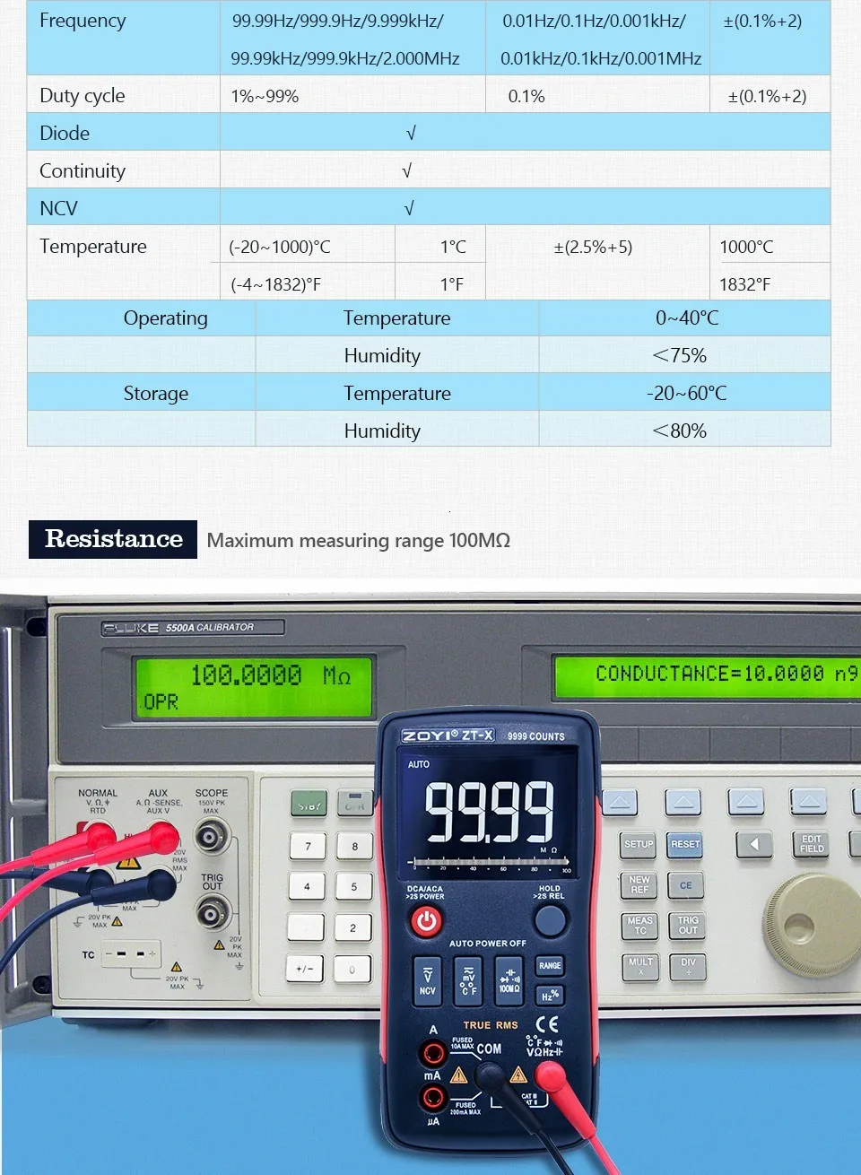 | 99.99MΩ | 0.01MΩ | ±(3.0% + 5) | ||