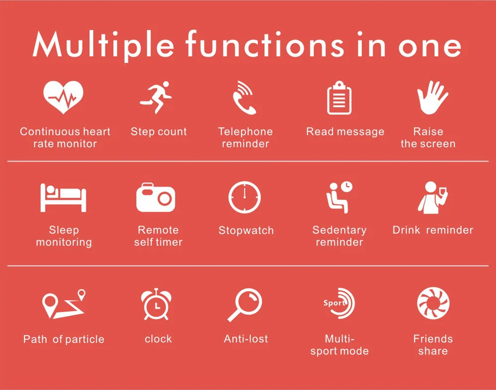 | Трекер для здоровья | Шагомер, монитор сердечного ритма, монитор сна, напоминание о питье, кровяное давление |