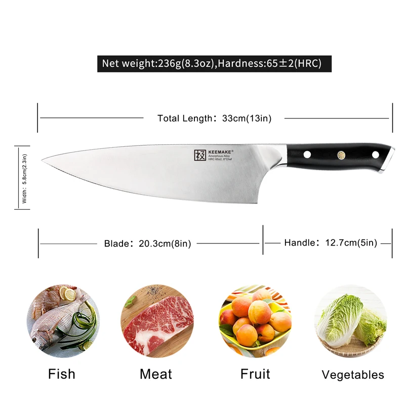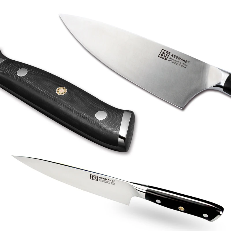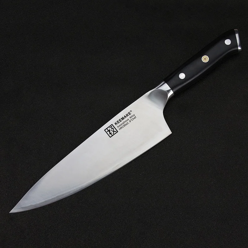 KEEMAKE 8 дюймов нож шеф-повара кухонные ножи жидкая металлическая сталь 65HRC сильная твердость шеф-повара Резак Инструменты Высокое Качество G10 + S/S ручка
