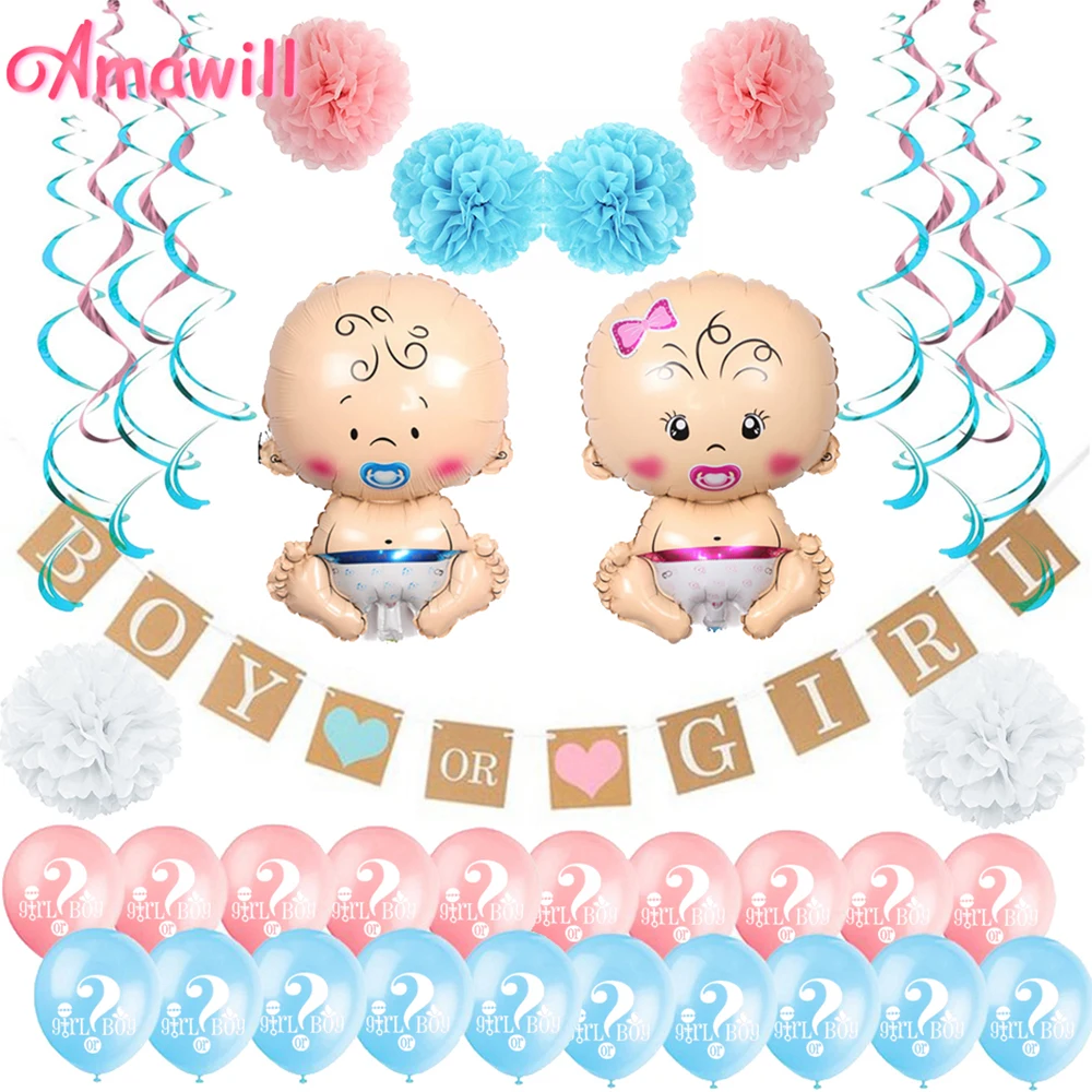 Amawill мальчик или девочка баннер девочка мальчик фольгированный шар розовый синий латексные шары завитки гирлянды для пола раскрывают украшения 8D