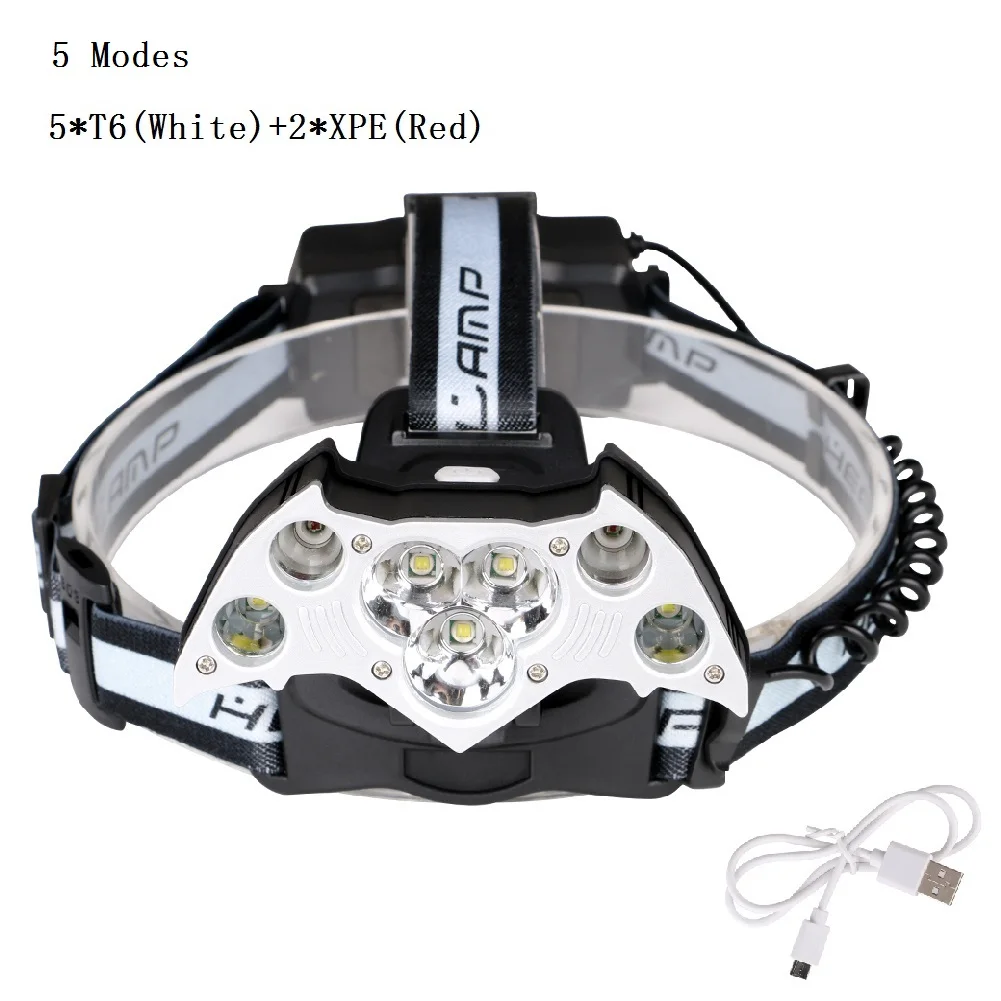 Sanyi XML 9 * T6 светодиодный налобный фонарь Micro USB зарядка 18650 Головной фонарь охотничий кемпинг Lanterna Предупреждение ющий красный фонарик