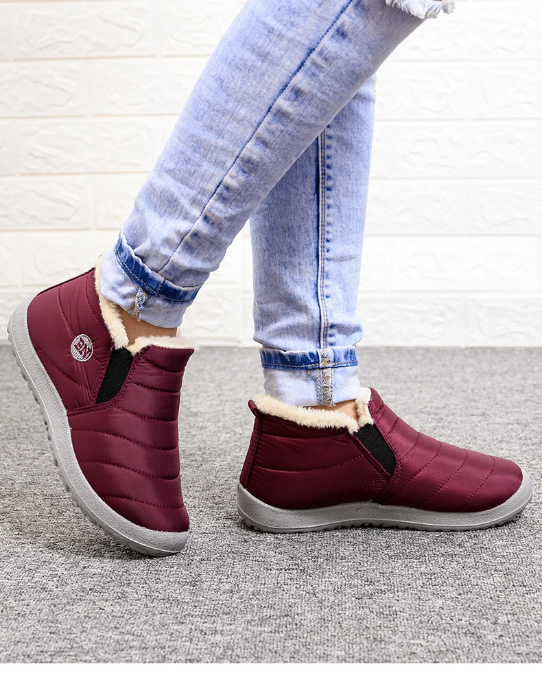 Женские ботинки; Сверхлегкая Зимняя обувь; Женские ботильоны; Botas Mujer; Зимние ботинки; Женская повседневная обувь без шнуровки на плоской подошве; Плюшевая обувь