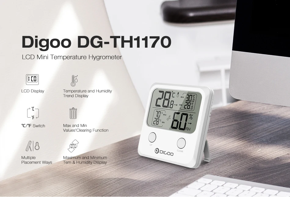 1 х DIGOO TH1170 ЖК-Мини Цифровой температурный гигрометр