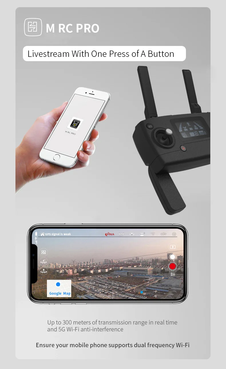 Новый член семьи: X5! Супер крутой Дрон, который является именно начинающим дроном, который вам нужен. Благодаря особому внешнему виду вы полюбите его с первого взгляда. Эта версия включает в себя 4K 5G Wifi HD камеру, давая вам впечатляющий опыт фотографирования с неба!Пожалуйста, имейте в виду:1. Вы будете использовать определенную ручку на пульте дистанционного управления для регулировки угла объектива камеры, поэтому, пожалуйста, не меняйте Угол объектива камеры рукой! Это может привести к неожиданному повреждению камеры.2. Перед подключением мобильного телефона с помощью приложения X5 обратитесь к поставщику услуг, если ваш смартфон поддерживает 5G сигнал Wi-Fi.Особенности:Функции: вверх/вниз, поворот влево/вправо, вперед/назад, боковой полет, Безголовый режим, удержание высоты, GPS, Wifi FPV, возврат одной кнопкой, Взлет/посадка одной кнопкой, следуйте за мнойБесщеточный двигатель: оснащен бесщеточным Мотором MT1806 1500KV, обеспечивает низкое трение во время работы двигателя и уменьшает производство тепла.С привлекательным безголовым режимом, полностью решая проблемы пилота с потерей ориентации.Функция позиционирования GPS и удержания высоты обеспечивает стабильный полет без беспокойства.Снятие с одной кнопки/посадка делает работу более удобной и она очень подходит для начинающих операций.С интересующей Вас функцией ваш самолет будет непрерывно крутить по часовой стрелке вокруг заданной точки.Следуя за мной, камера самолета будет распознавать человеческую фигуру и автоматически следовать за ним и захватывать его движение с особым воздушным видом.Один ключ возврата: будет направлять самолет обратно в точку домой.Характеристики:Бренд: JJPROМодель: X5 EPIKНаименование товара: Радиоуправляемый квадрокоптерЦвет: серыйКолесная база: 250 ммМотор: 1806 1500KV бесщеточный моторКамера: 4K 5G WIFI камераВстроенный гироскоп: 6-осевой гироскопПульт дистанционного управления: 2,4 ГГц режим 1/2Канал: 4 каналаРасстояние дистанционного управления: 300 м5G расстояние передачи Wifi: 200-300 мМаксимальная скорость: 60 км/чРасстояние передачи Wifi камеры: 200-300 мМощность передатчика: 4 * AA батареи (не входят в комплект)Аккумулятор для квадрокоптера: 7,4 В 2420 мАч литий-полимерный аккумуляторМаксимальное время полета: около 18 минутВремя зарядки: около 300 минутВес: 400 гРазмер: 350*350*95 ммИнформация о посылка:Посылка Размеры: 36,5*27*16 см/14,4*10,6 * 6.3inПосылка Вес: 1340 гПримечание:Этот товар не подходит для детей в возрасте до 14 лет.Пожалуйста, внимательно прочитайте введение перед началом работы.Внимание к аккумулятору:Не перезаряжать и не перезаряжать батареи.Не ставьте его рядом с высокой температурой.Не бросайте его в огонь.Не бросайте его в воду.Посылка:1 * JJPRO X5 EPIK RC КвадрокоптерКамера 1*4K1*7,4 V 2420mAh литий-полимерный аккумулятор1 * пульт дистанционного управления2 * пара запасных пропеллеров1 * держатель для телефона1 * Набор отверток1 * USB разъем и зарядное устройство1 * Руководство пользователя и набор наклеекПримечание:Дрон старой версииКамера 1080P, теперь Новая версия-камера 4K