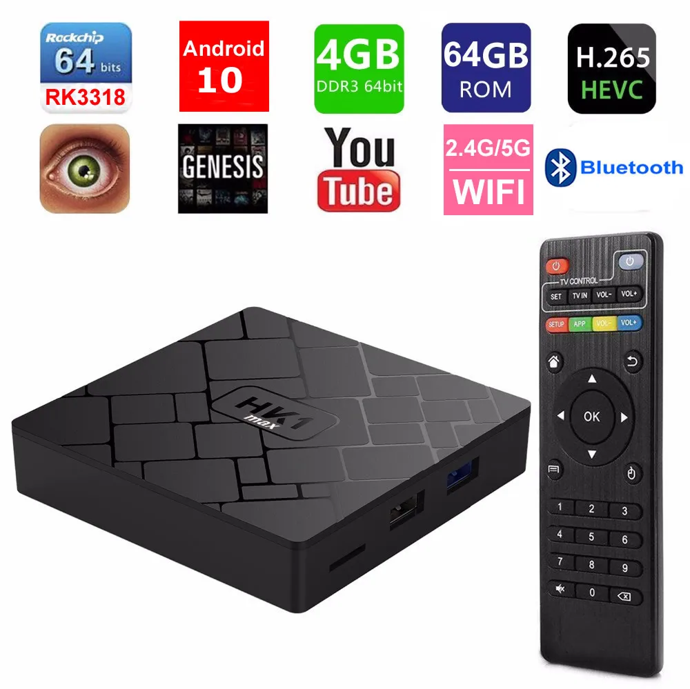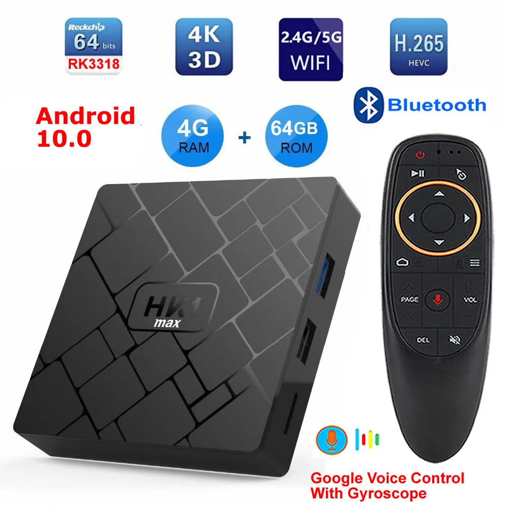 ТВ-приставка HK1 MAX на Android 10, 4 ядра, 4 + 64 ГБ, 2,4/5G