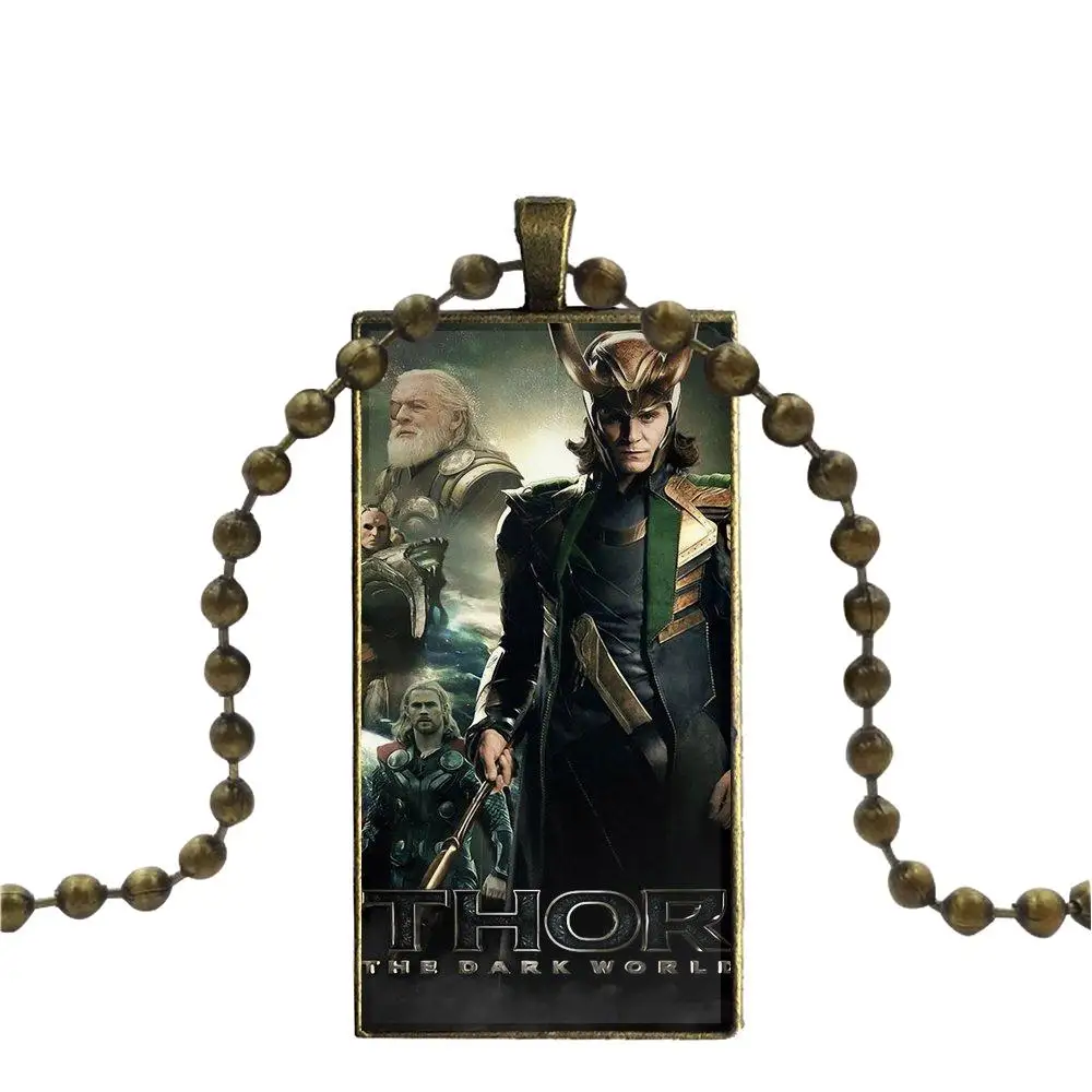 Loki Thor The Dark World для мужчин и женщин Подарочная бижутерия со стеклянными кабошонами бронзового цвета с колье с длинной подвеской прямоугольное ожерелье
