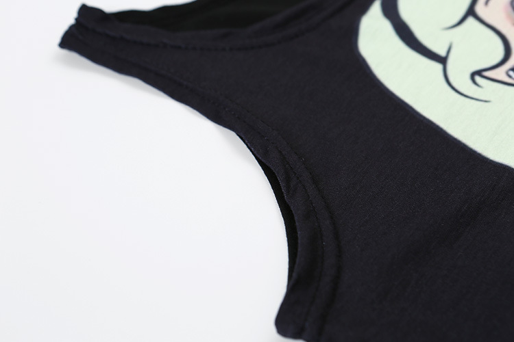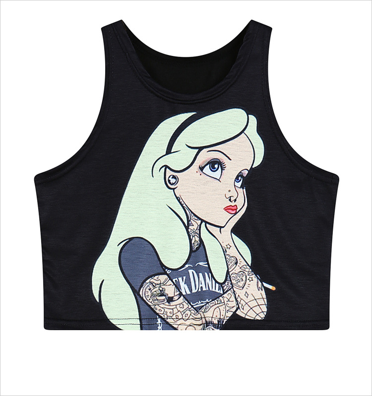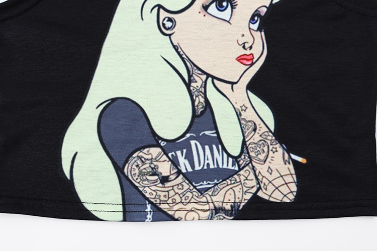 Черный топ на бретельках с рисунками из мультфильмов, крутые милые кроптопы для девочек, Короткие топы, интересные Женские топы с принтом в виде пятен, пикантные Топы с открытым животом на пуговицах Бюст: 70 см растягивается: 95 см