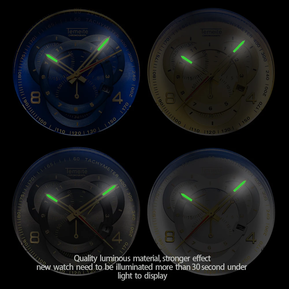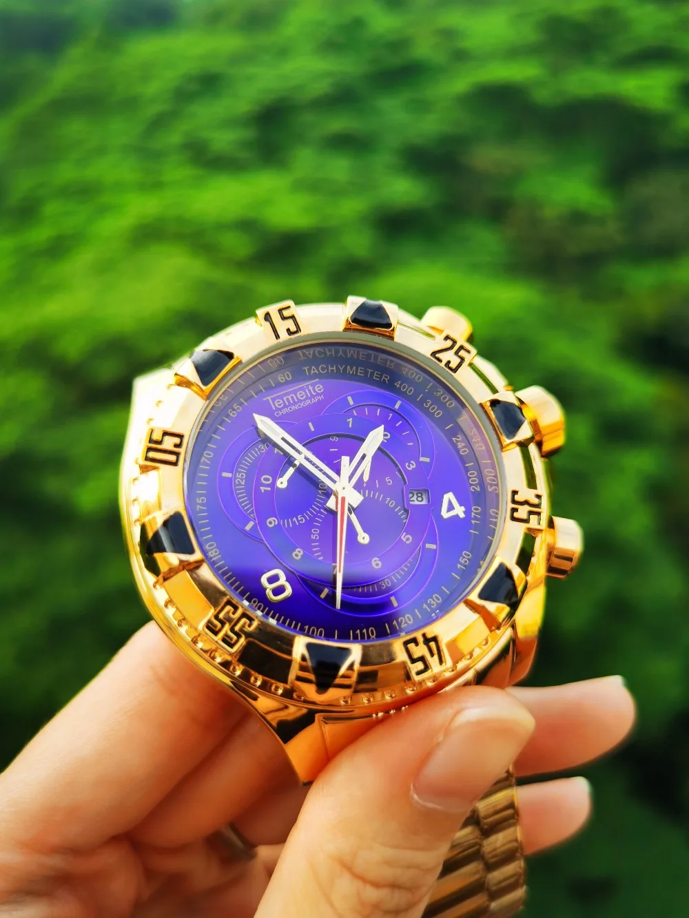 Модные часы TEMEITE 2019Бренд: TEMEITEСтиль: Модный, Повседневный, деловой, роскошный, спортивный.Добро пожаловать оптом и прямая поставка.Основная особенность:1. Роскошные дизайнерские часы, модный стиль платья.2. Наручные часы с кожаным ремешком в духе новых модных тенденций.3. Гарантия на движение в течение 12 месяцев.Характеристики:-Диаметр циферблата: 52 м-Чехол Толщина: 17 мм-Длина часов: 220 мм-Ширина ремешка: 26 мм-Вес часов: 240 г-Часовой механизм: кварцевый (требуется батарея)-Материал зеркала: Hardlex.-Тип застежки: складная застежка с защитой.-Функция: правый циферблат:Три небольших циферблатаНе работаетТолько украшение; Отображение даты;Светящиеся стрелки.-Водонепроницаемость: Водонепроницаемость (не для плавания или душа).Подходящий повод:Идеально подходит для вечерние, юбилей, деловой стиль, повседневная одежда, Спорт на открытом воздухе, занимаетесь делами в помещении или ежедневного использования.Посылка включает в себя:1 x часы (подарочные коробки по желанию).