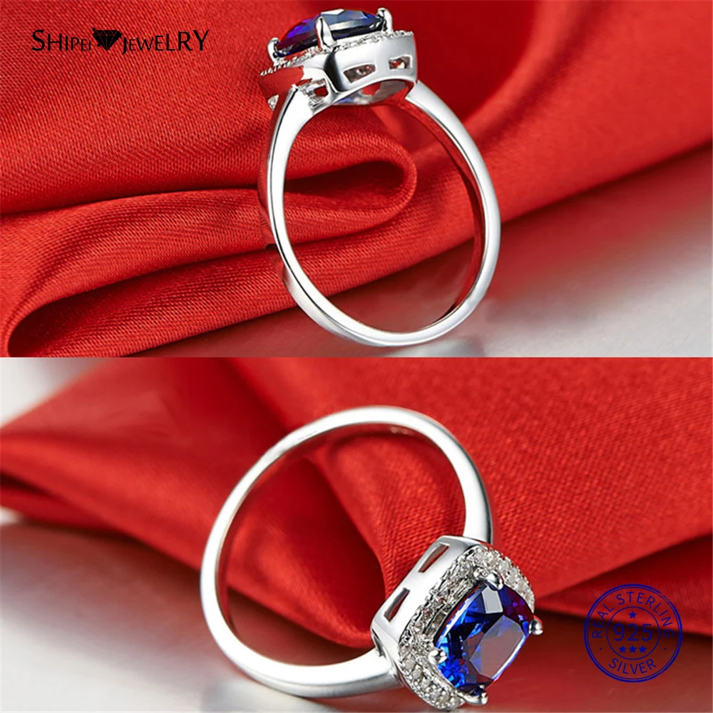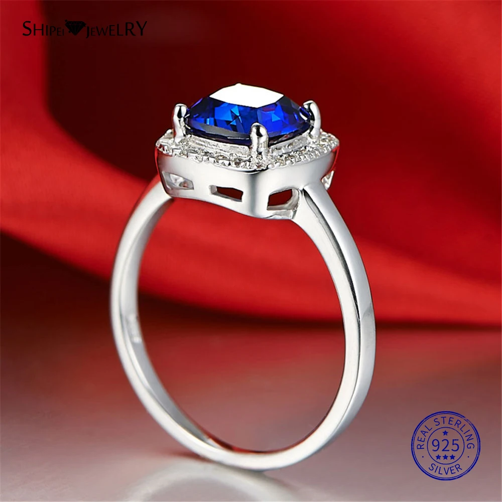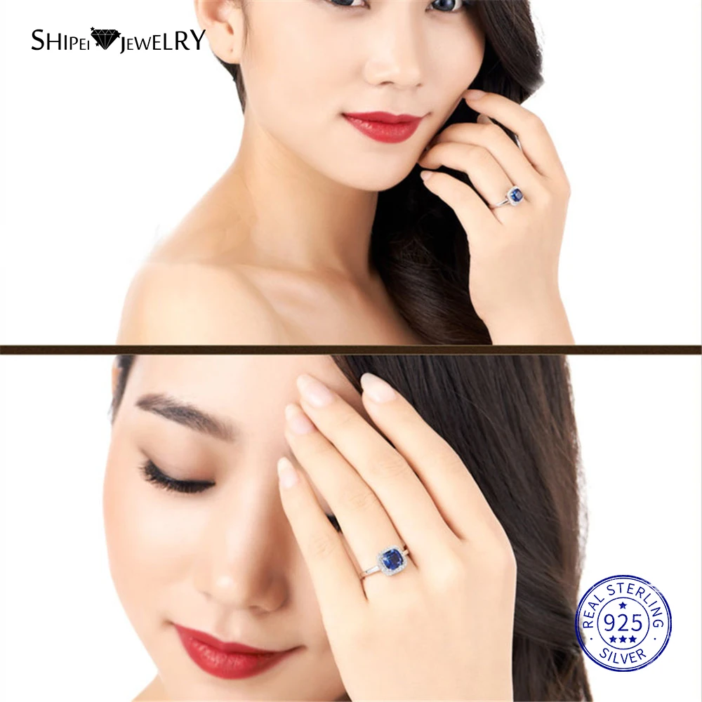 Shipei 100% стерлингового серебра 925 ювелирные изделия из белого золота квадратный сапфир обручальное кольцо для женщин Подарок на годовщину