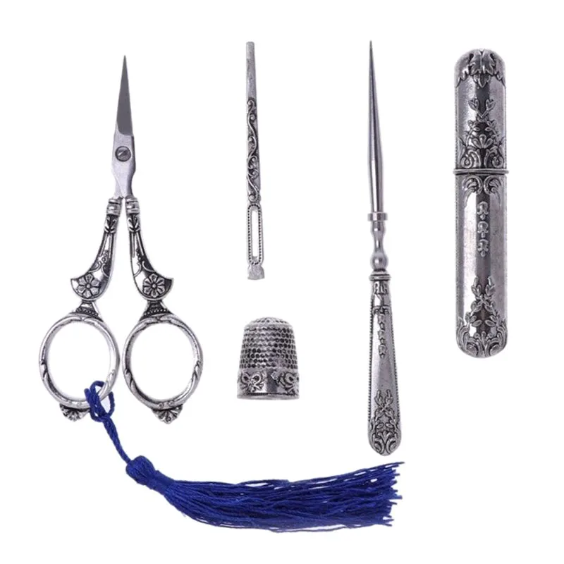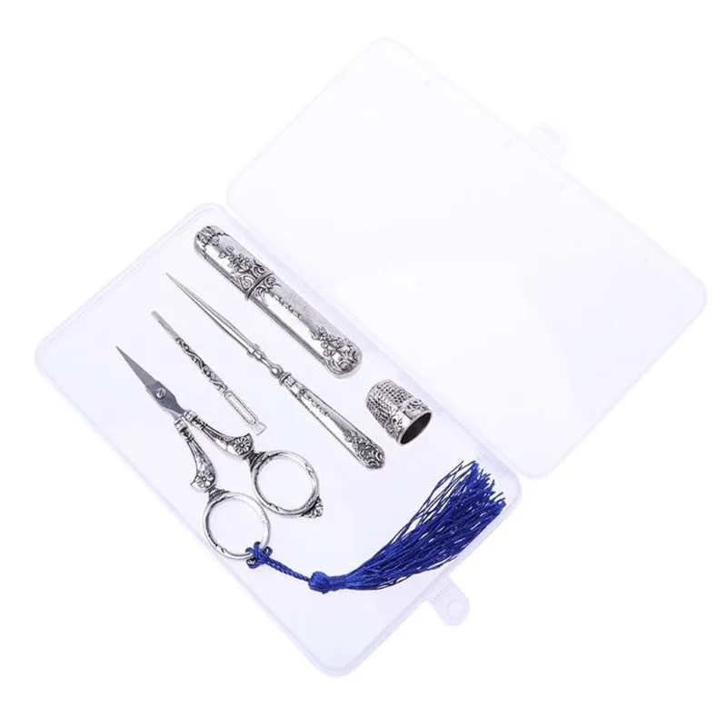 Набор швейных ножниц, винтажный инструмент для вышивания, набор из сплава Awl Threader Thimble Needle чехол LB88