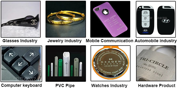 Ювелирные изделия, клавиатуры сотового телефона, автозапчасти, электронные компоненты, электронные приборы, аппараты связи, санитарные изделия, пряжки, кухонные принадлежности, сантехнические средства, инструменты, нож, очки, часы, плита, изделия из нержавеющей стали и т. Д.