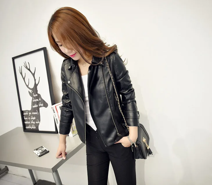 Женская куртка из искусственной кожи на весну и осень, новинка 2018, тонкая черная мотоциклетная куртка из мягкой искусственной кожи