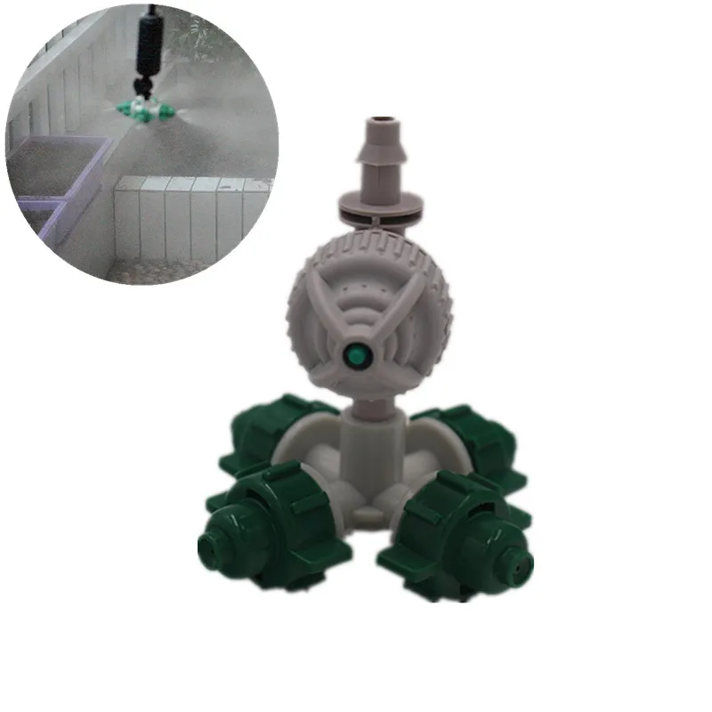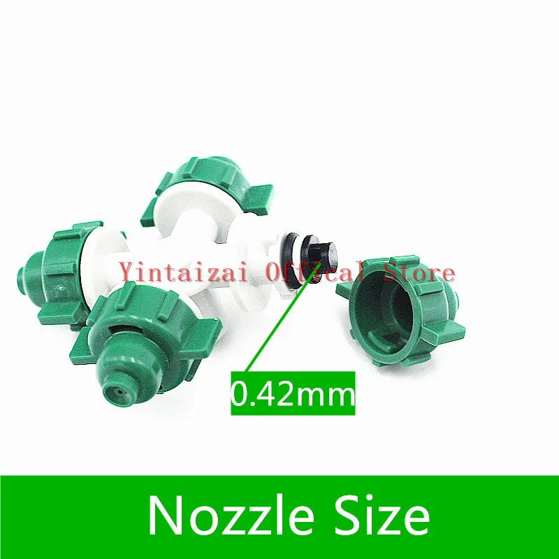 Быстрая доставка, 20 шт., зеленые 4 насадки, запотевание, разбрызгиватель с белым противопротекающим соединителем для теплицы, микроорошения, капельного полива