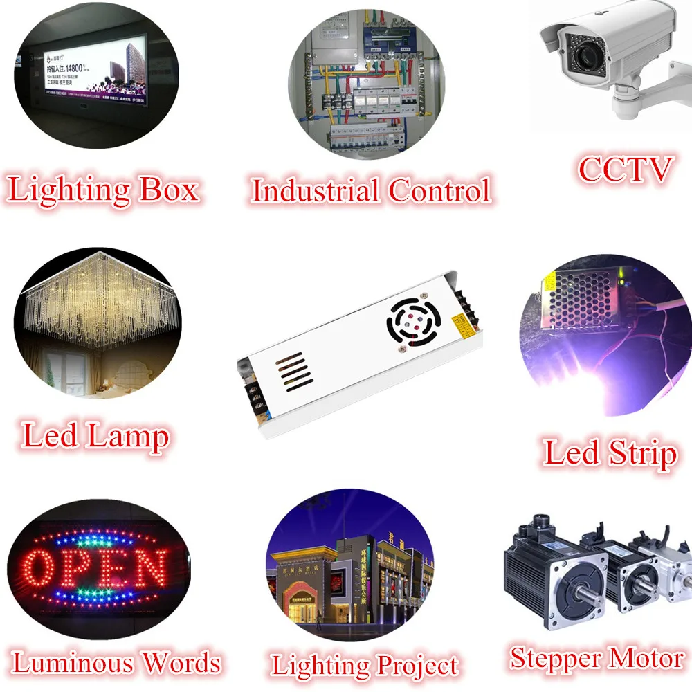 Особенности: Входное напряжение: 85-265 в перем. Тока Выходное напряжение: 12 в пост. Тока/24 в пост. Тока, ± 15% Ток на выходе/мощность: 5A/60 Вт, 10A/120 Вт, 12.5A/150 Вт, 16.7A/200 Вт, 20.8A/250 Вт, 30A/360 Вт ± 15% Материал корпуса: металлический чехол, алюминиевый чехол Рабочая температура: 0 ~ 40C Температура хранения: -20 ~ 60C Влажность окружающей среды: 0 ~ 95%, без конденсата Встроенная защита от перенапряжения, перегрузки по току и короткого замыкания Конструкция PWM, убедитесь, что источник питания является стабильным и высокоэффективным. Защита от помех, прошли испытания EMC, волна менее 20 мВ. Постоянное напряжение на выходе, предположим, стабилизированного источника питания для Светодиодный осветительные приборы для того, чтобы достичь длительный срок службы Размеры: DC12V 1.25A 15 Вт: 7x4x3cm DC12V 2.1A 25,2 W:8.5x5.5*3,5 см DC12V 5A 60W:16x3,4x4,2 см (6.3x1.7x1.3in) DC12V 10A 120W:19x5x4 см (7x2x1.6in) DC12V 12A 150W:20x6x4 см (8x2.3x1.6in) DC12V 16A 200W: 22,4x7x4,2 см (8.8x2.8x1.7in) DC12V 20A 250W: 22,4x7x4,2 см (8.8x2.8x1.7in) DC12V 25A 300W: 22,4x7x4,2 см (8.8x2.8x1.7in) DC12V 30A 360W: 22,4x7x4,2 см (8.8x2.8x1.7in) DC24V 1A 24W:8.5x5.5*3,5 см DC24V 2A машинка для стрижки 48 Вт: 8.5x5.5*3,5 см DC24V 2.5A 60W:16x3,4x4,2 см (6.3x1.7x1.3in) DC24V 5A 120W:19x5x4 см (7x2x1.6in) DC24V 6.25A 150W:20x6x4 см (8x2.3x1.6in) DC24V 8.4A 200W: 22,4x7x4,2 см (8.8x2.8x1.7in) DC24V 10.5A 250W: 22,4x7x4,2 см (8.8x2.8x1.7in) DC24V 15A 360W: 22,4x7x4,2 см (8.8x2.8x1.7in) Применение: