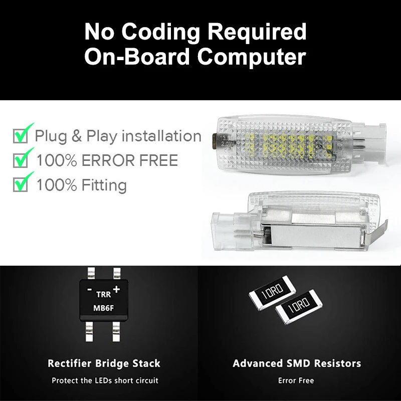 Прямая установка, без проводки и видоизменения Простая установка, возможна установка «сделай сам». Не повреждает оригинальный корпус Можно обновить как заводские галогенные, светодиодный светодиодные Без ошибок OBC на всех моделях приложений. Высокая яркость. Специальная конструкция прозрачных передних линз светодиодный широкого спектра светильник. Светильник ка номерного знака, другие демонстрационные аксессуары на картинке в комплект не входят!