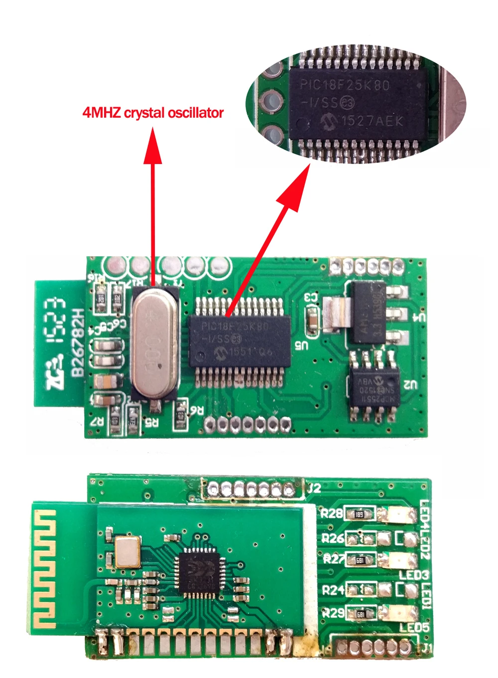Есть две платы, чип PIC18F25K80 находится на второй плате.